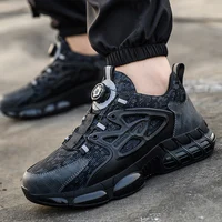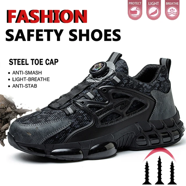 Safety Shoes For Men Steel Toe Anti-Puncture Men's Work Shoes Slip Resistant Reinforced Sole Rotating Button Fashion Sneaker