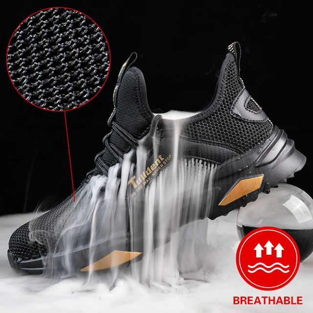 Super light safety shoe:It is like the weight of a pair of running shoes. They can help you to work happily all day without exhausting your feet. With super soft insoles and High elastic sole, your feet are safe and comfortable. Flying knit upper is very soft, Keep your feet comfortable and breathable.