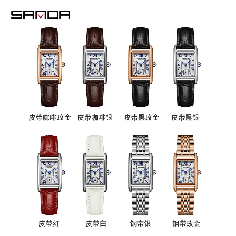 SANDA 1116 New Woman Watch Luxury Bracelet Fashion Business Leather Steel Quartz Wrist Watches For Women