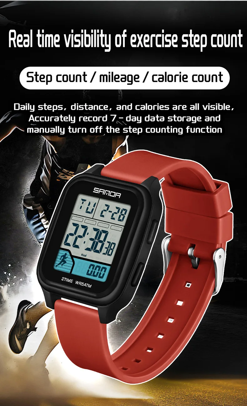 SANDA 2210 Sports Electronic Watch Step Calories+5 ATM Waterproof+Night Light Sports Monitoring Multifunctional