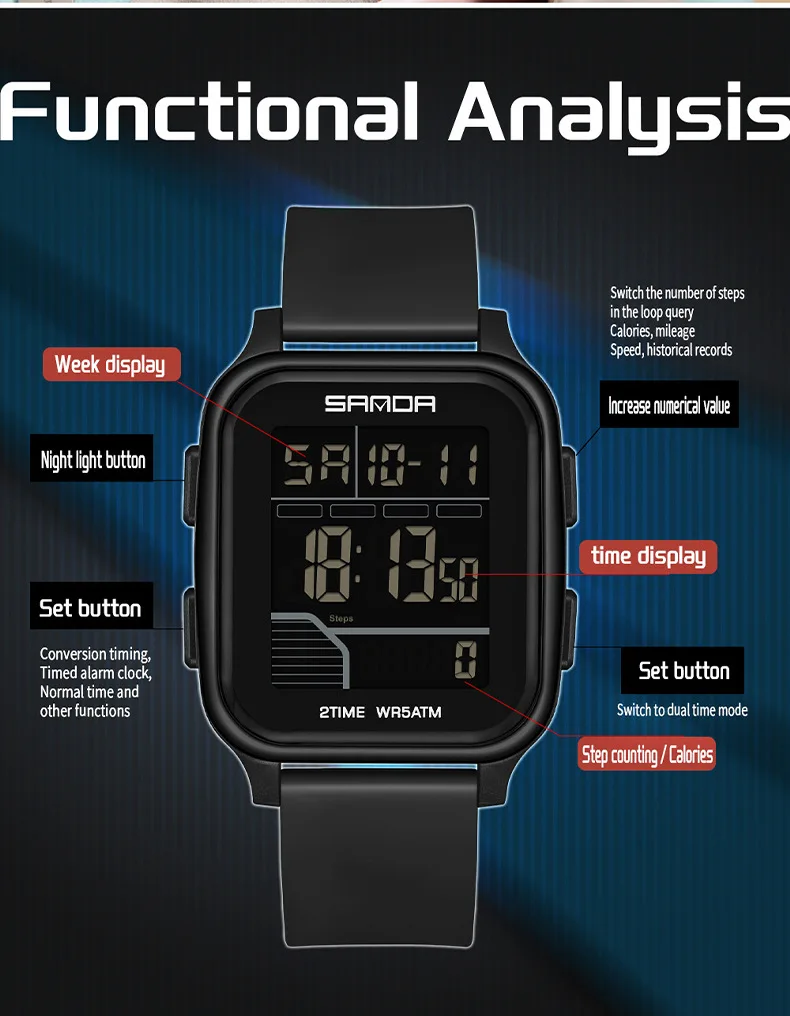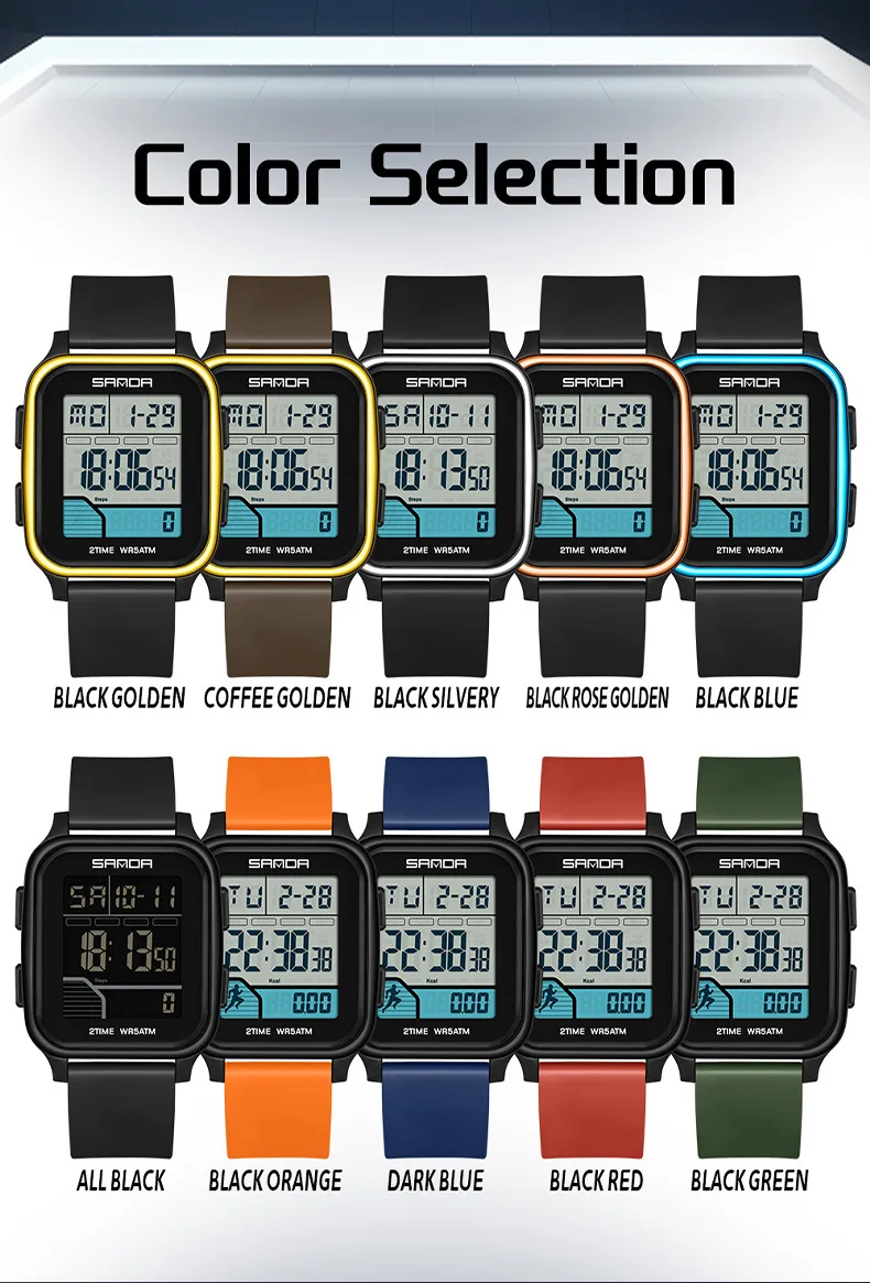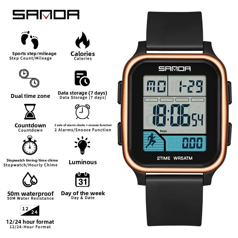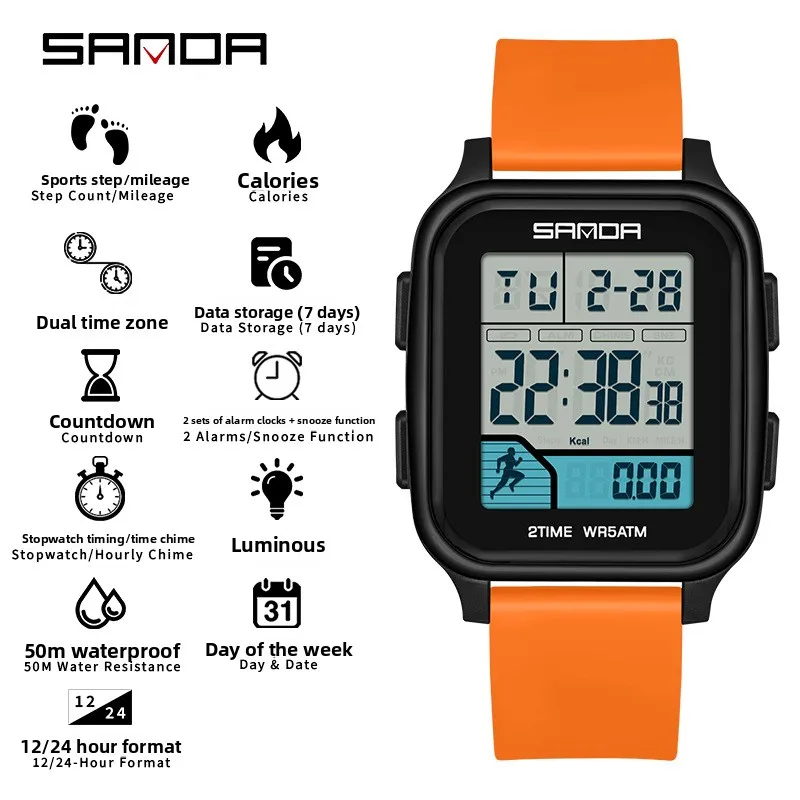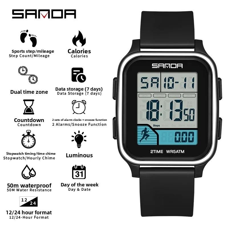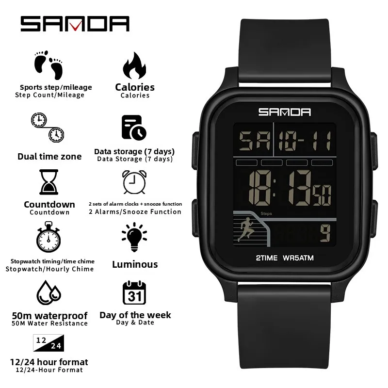 Be the first to review “SANDA 2210 Sports Electronic Watch Step Calories+5 ATM Waterproof+Night Light Sports Monitoring Multifunctional”