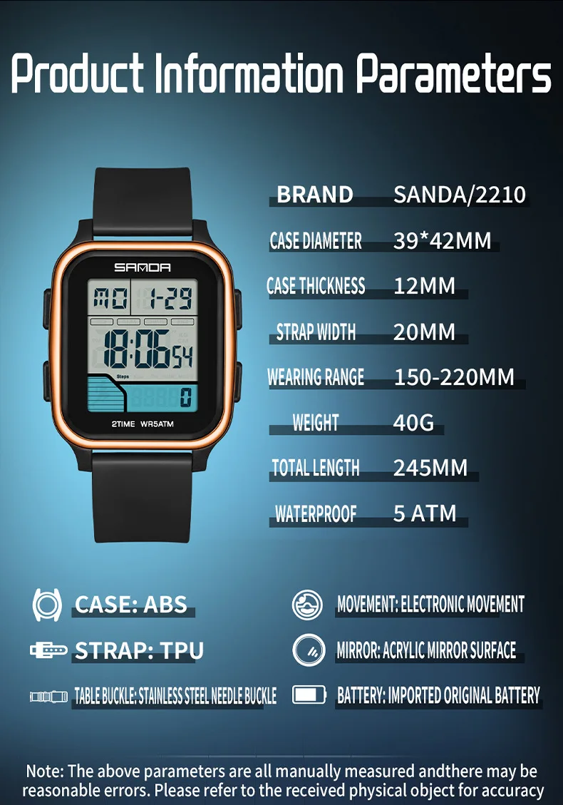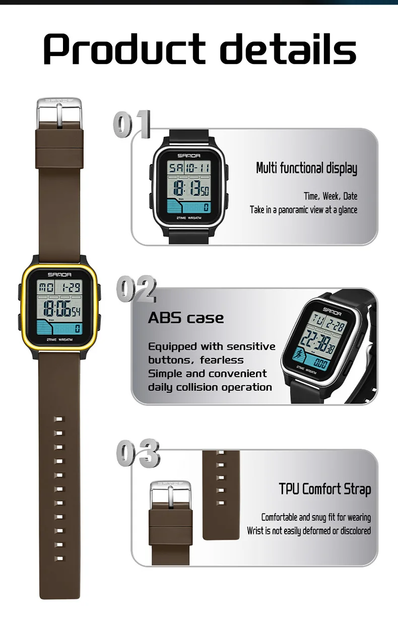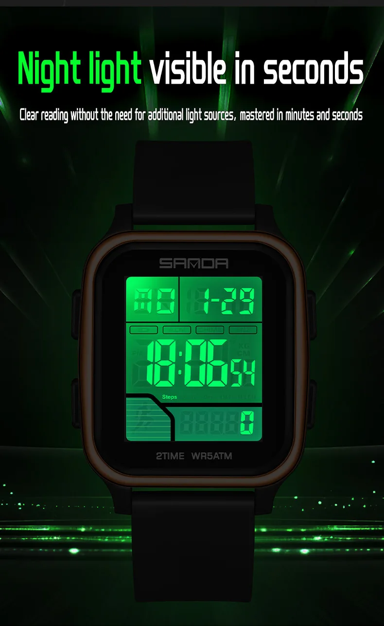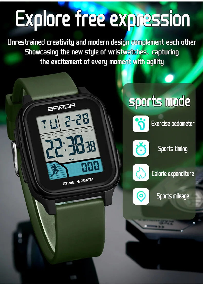 Be the first to review “SANDA 2210 Sports Electronic Watch Step Calories+5 ATM Waterproof+Night Light Sports Monitoring Multifunctional”