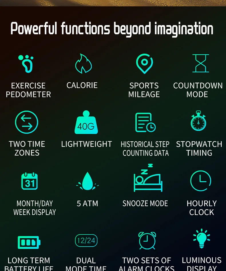 Two-place time, countdown, stopwatch timing, two sets of alarms, snooze mode, time on the hourDisplay the date and week at the same time, and multi-scene to meet the needs of time management, making life more orderly.