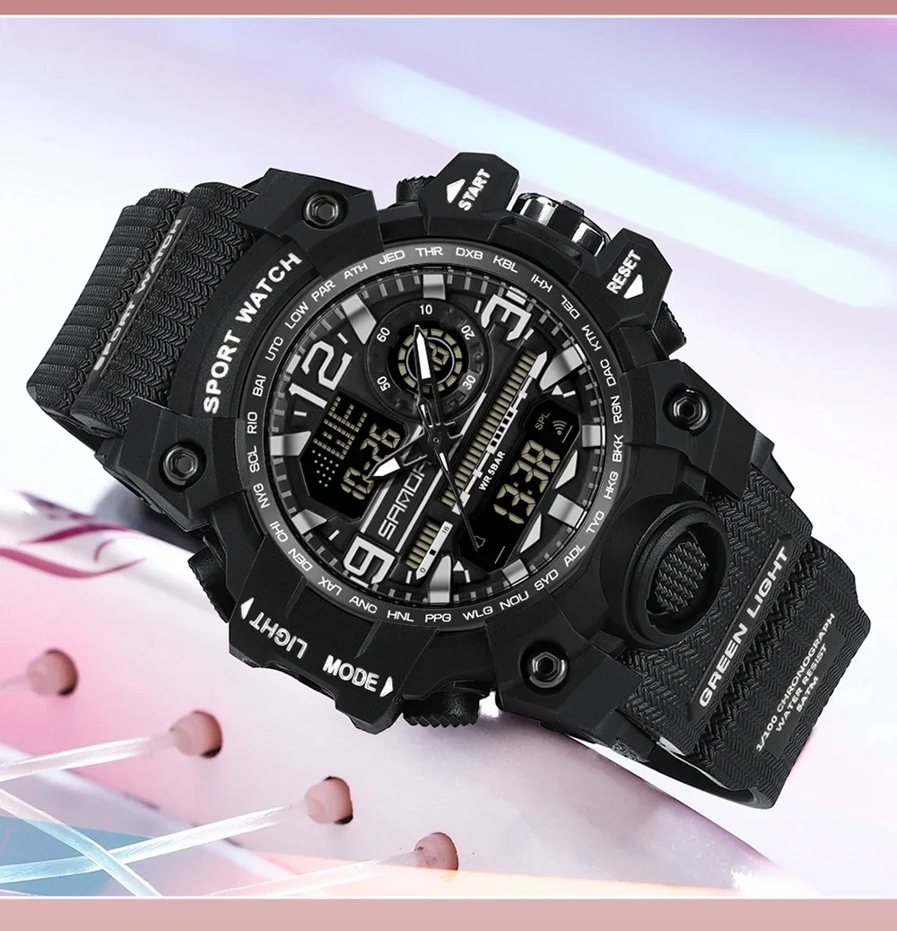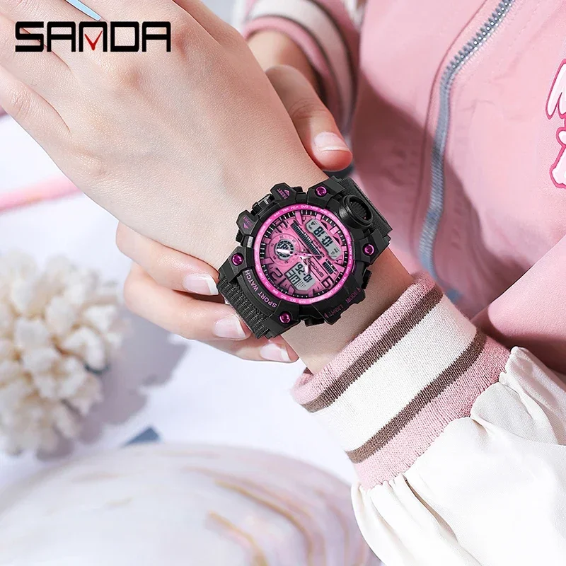 SANDA 3353 LED Dual Display Lady Quartz Wristwatches Digital Watch for Boy Girl Children Sports Waterproof Electronic Shockproof