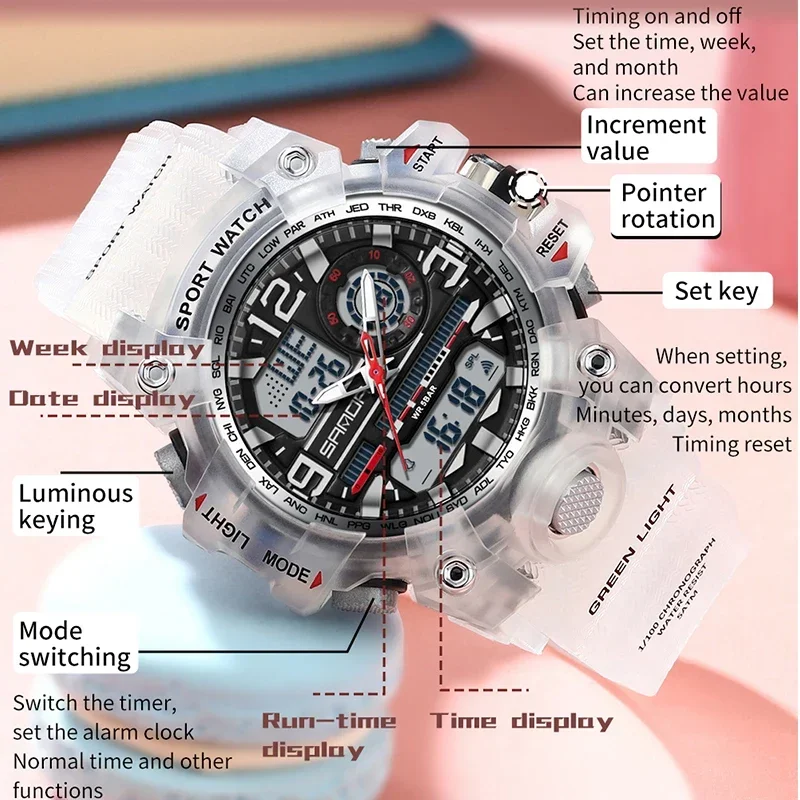 Be the first to review “SANDA 3353 LED Dual Display Lady Quartz Wristwatches Digital Watch for Boy Girl Children Sports Waterproof”