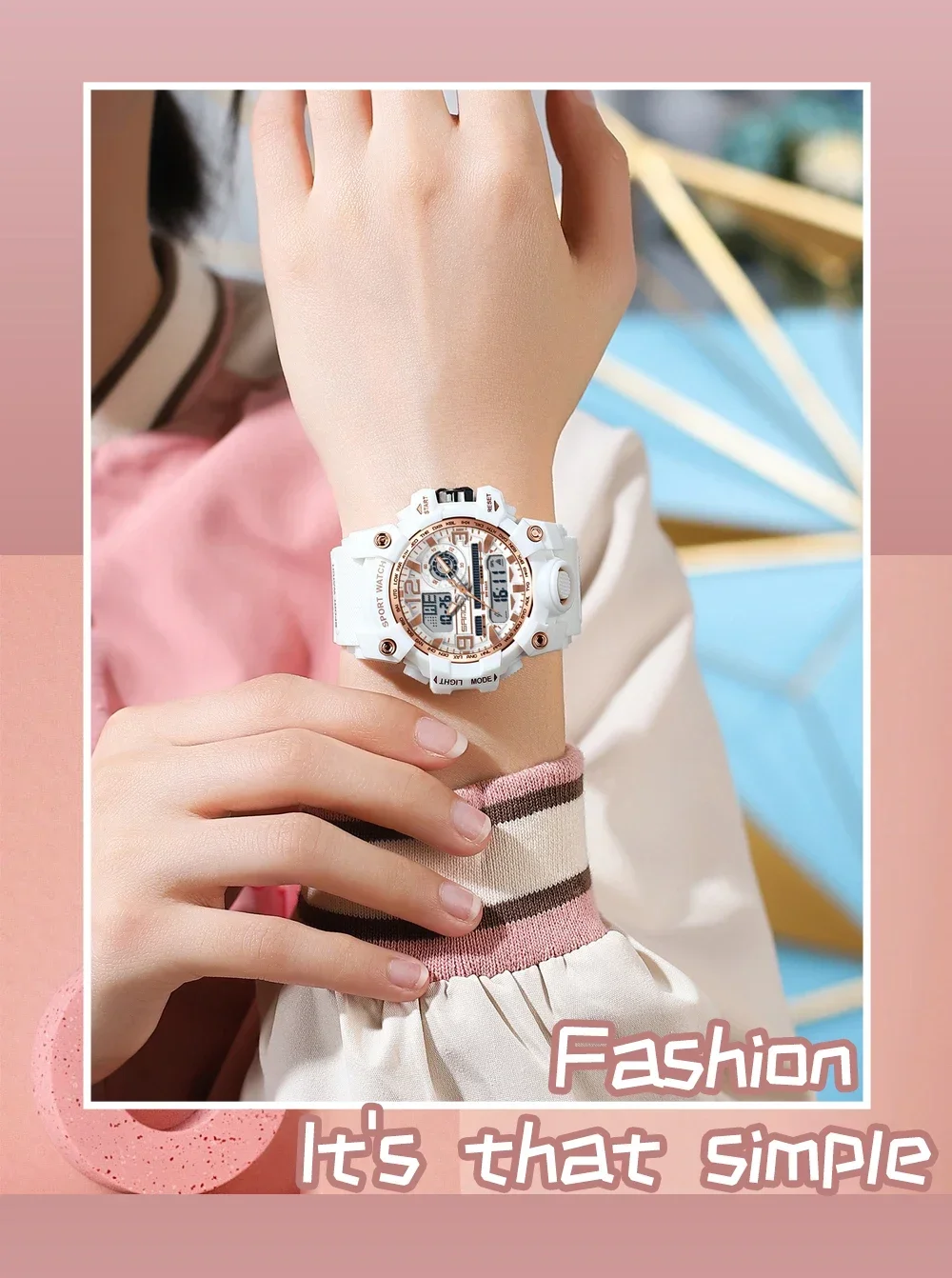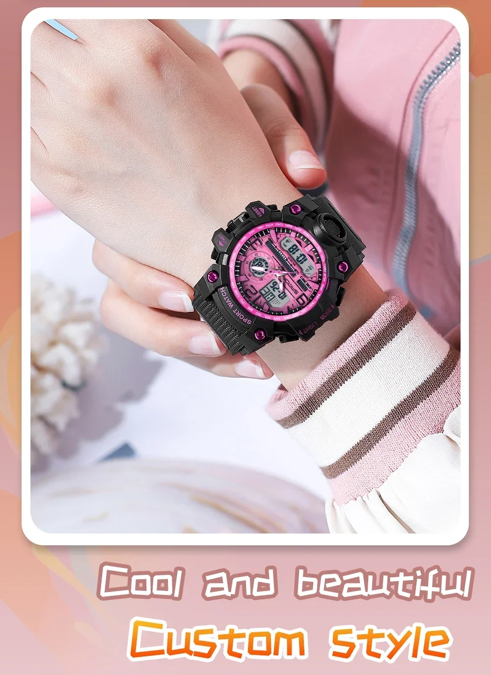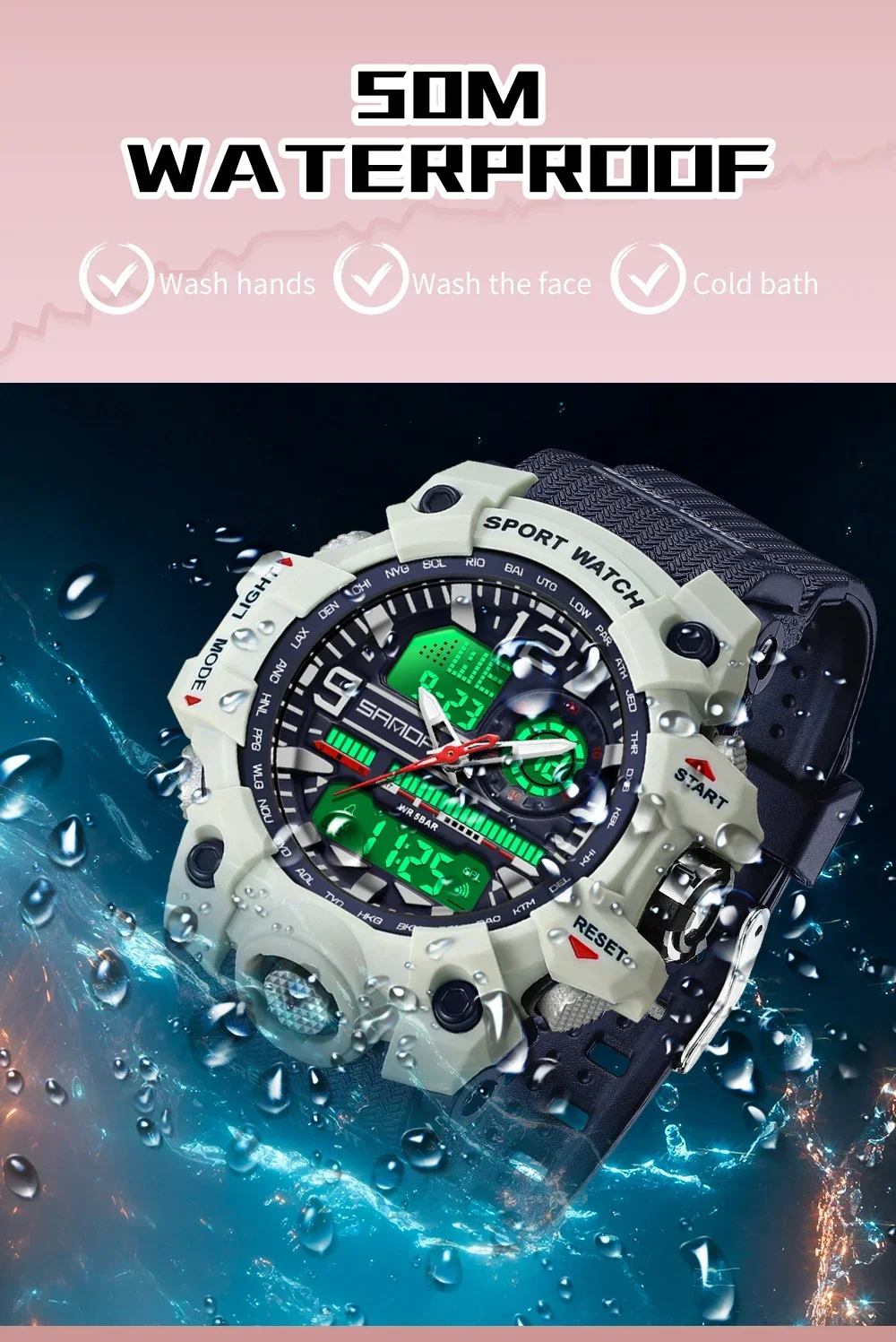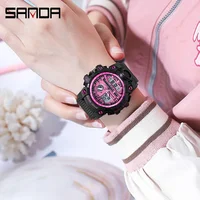 SANDA 3353 LED Sports Waterproof Electronic Shockproof Lady Quartz Wristwatches Dual Display Digital