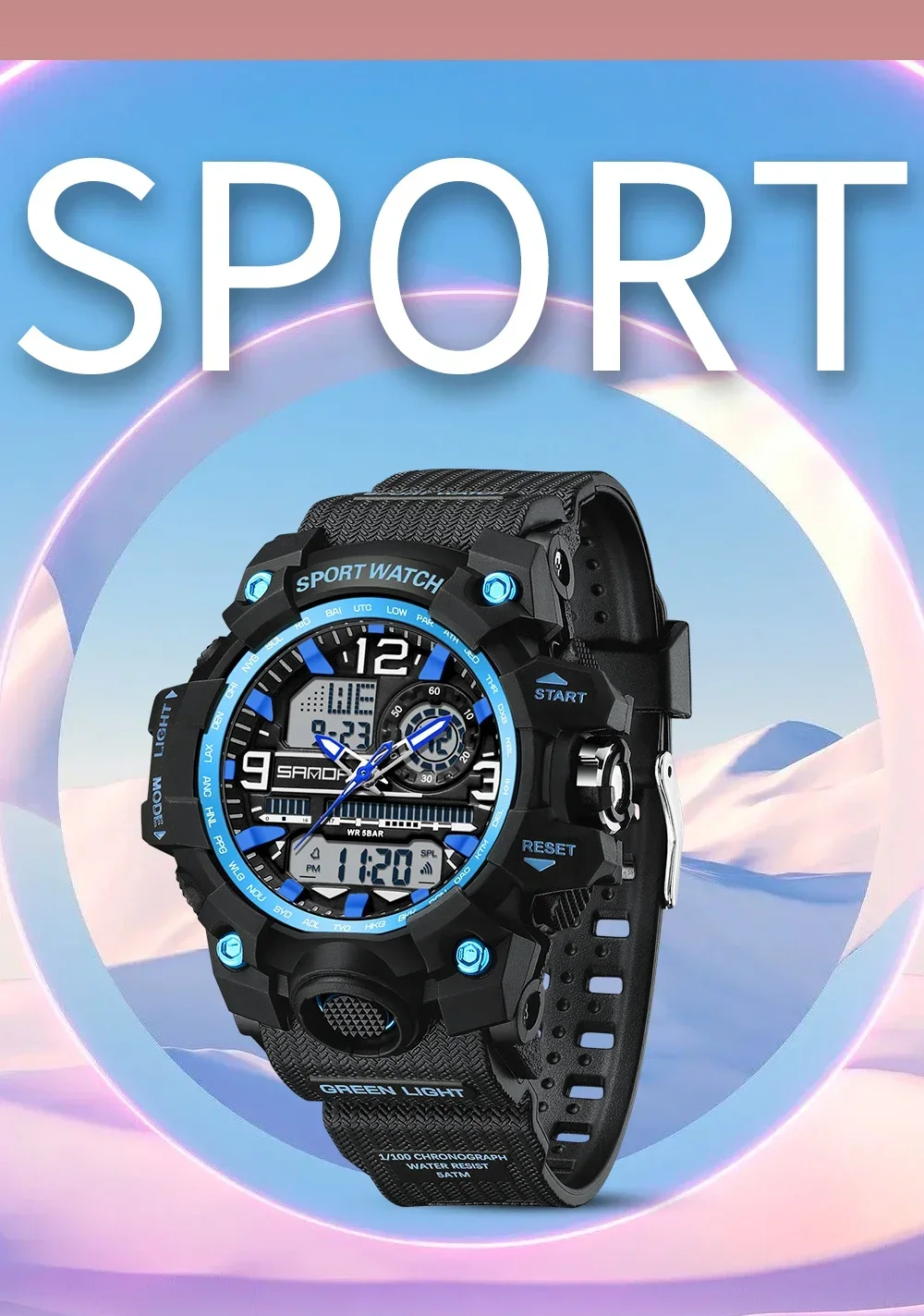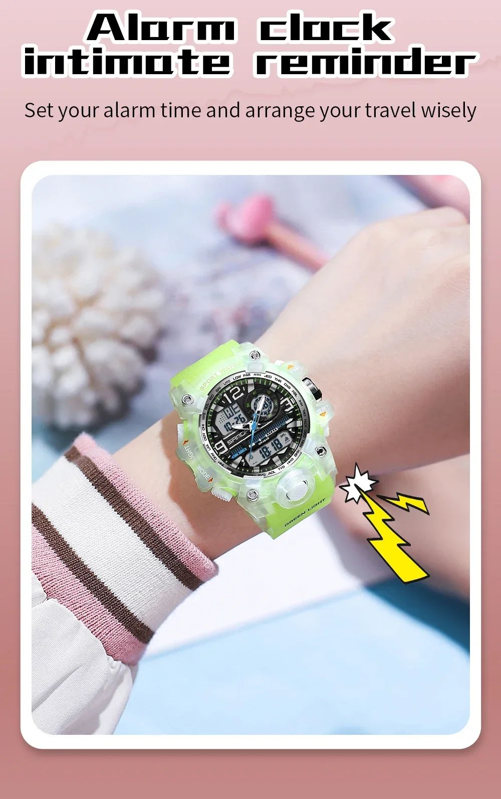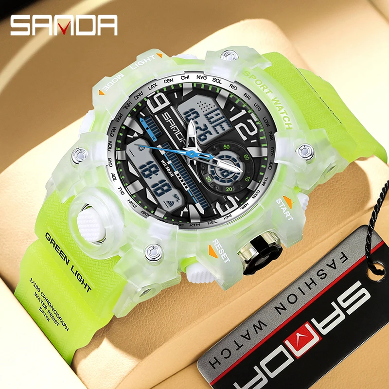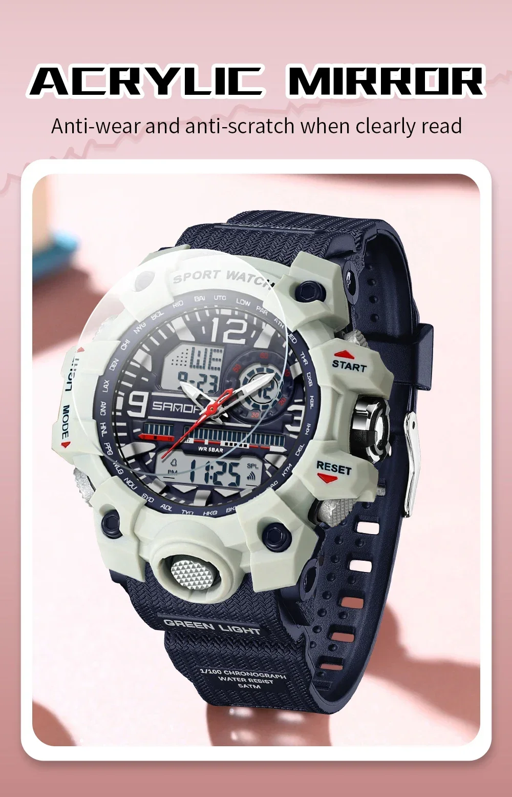 SANDA 3353 LED Sports Waterproof Electronic Shockproof Lady Quartz Wristwatches Dual Display Digital