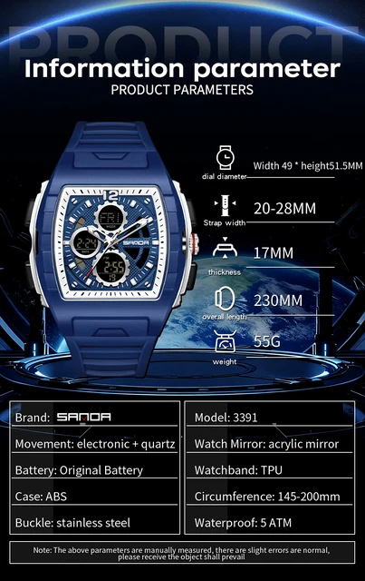 4.Due to shooting equipment and other reasons, there may be some color difference between the actual watch and the picture. Since the sizes are all measured manually, the actual figures may have some slight errors.Please ensure that you can accept this before placing an order. Thank you.