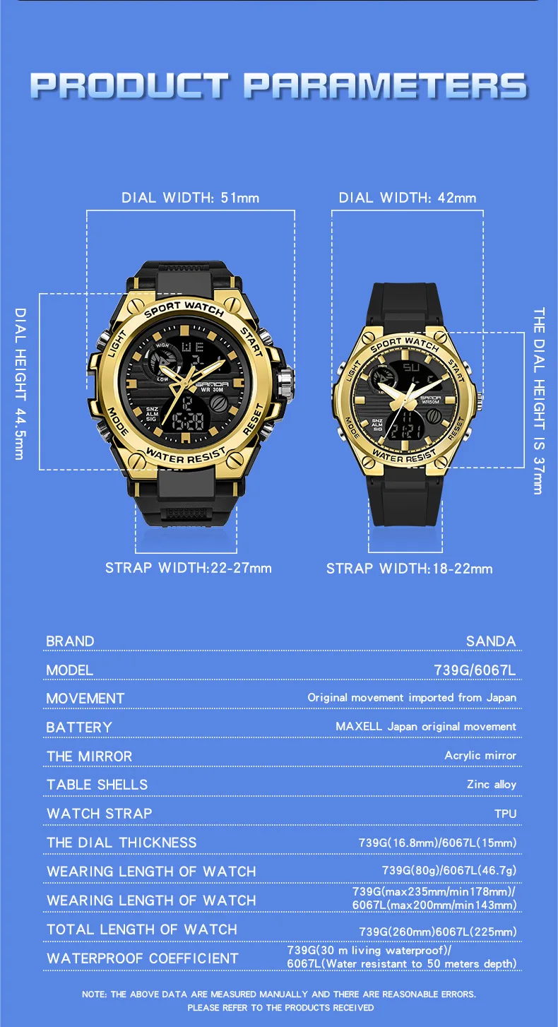 4.Due to shooting equipment and other reasons, there may be some color difference between the actual watch and the picture. Since the sizes are all measured manually, the actual figures may have some slight errors.Please ensure that you can accept this before placing an order. Thank you.