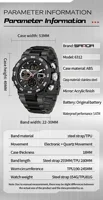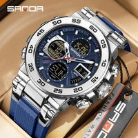 SANDA 6312 Luxury Tape Sports Watch Dual Display Dual Chip 5ATM Waterproof Multi functional Men's Electronic Watch
