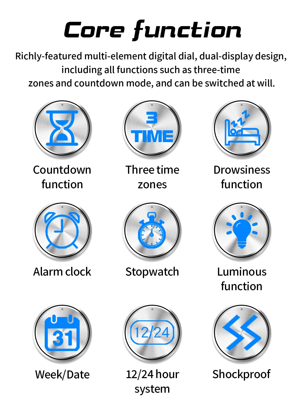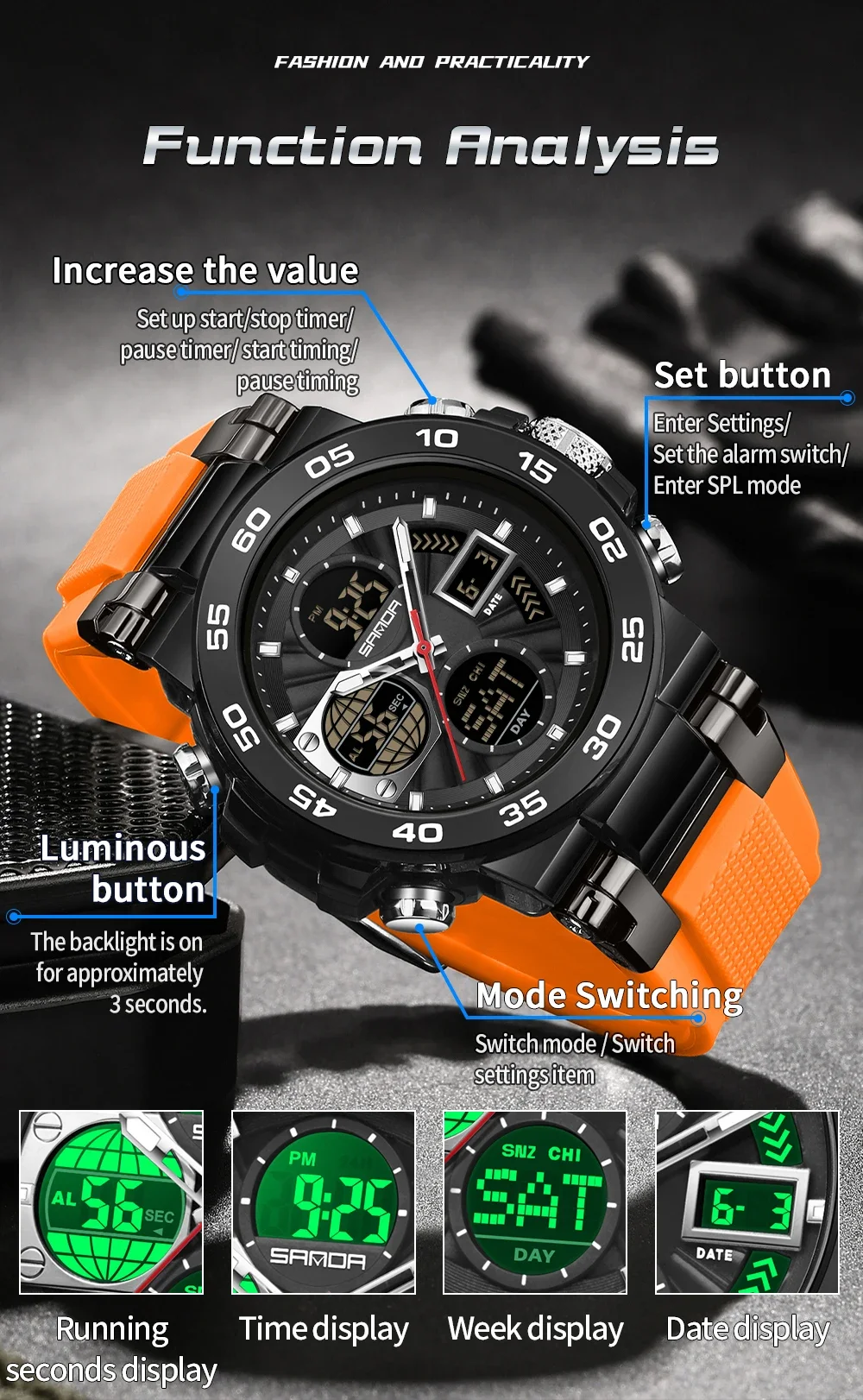 • Dial design: multi-element rich digital dial, dual display design, you can switch modes at will.