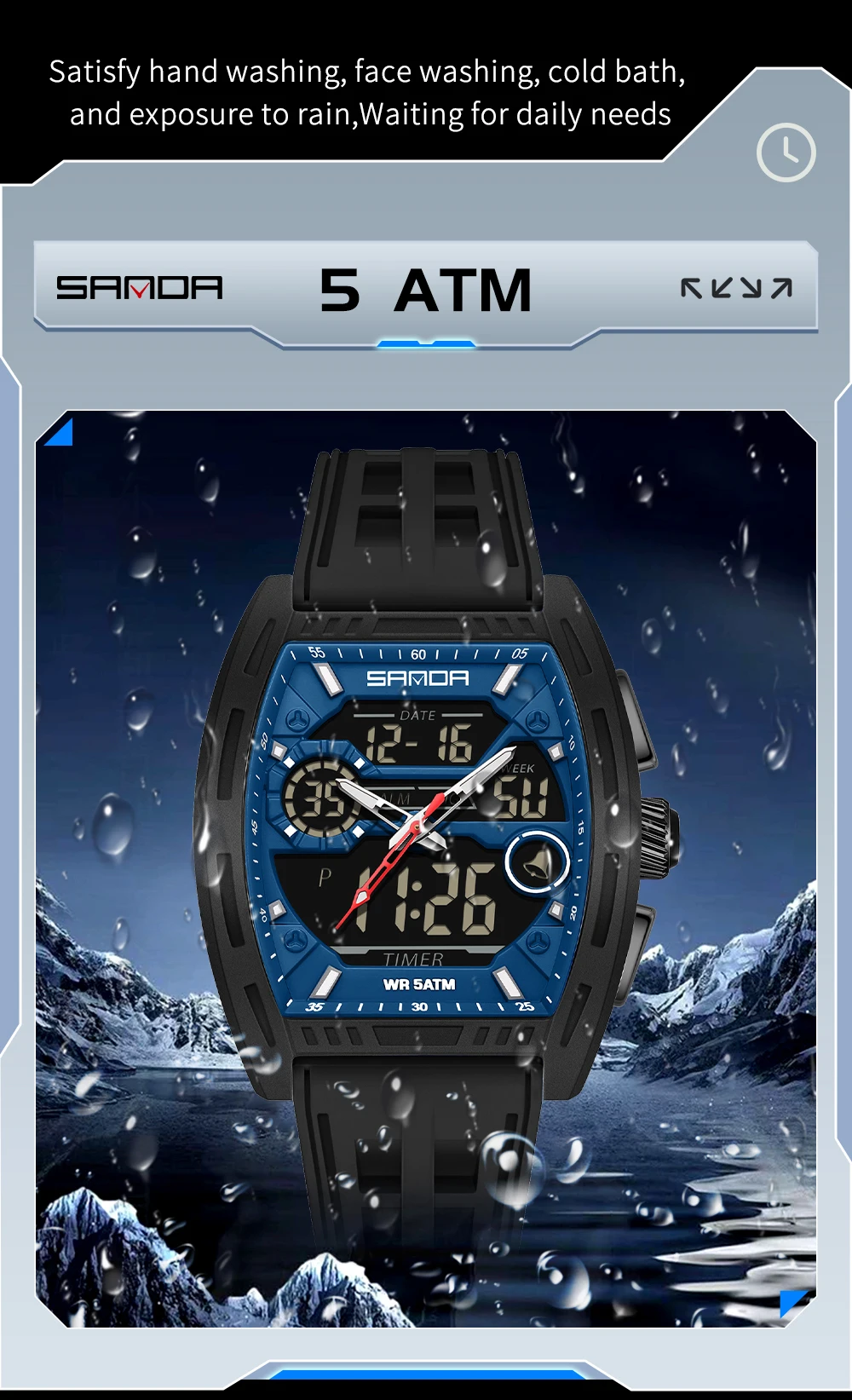 6. 3 ATM water resistant, perfect waterproof like washing hand/sweat/rain, but can not put into water or shower or swim.