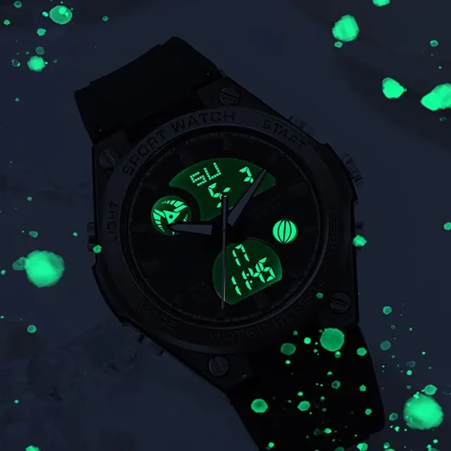 Features: shockproof, luminous, automatic date, waterproof, swimming, alarm, chronograph, running secondsWater-resistant depth:5Bar