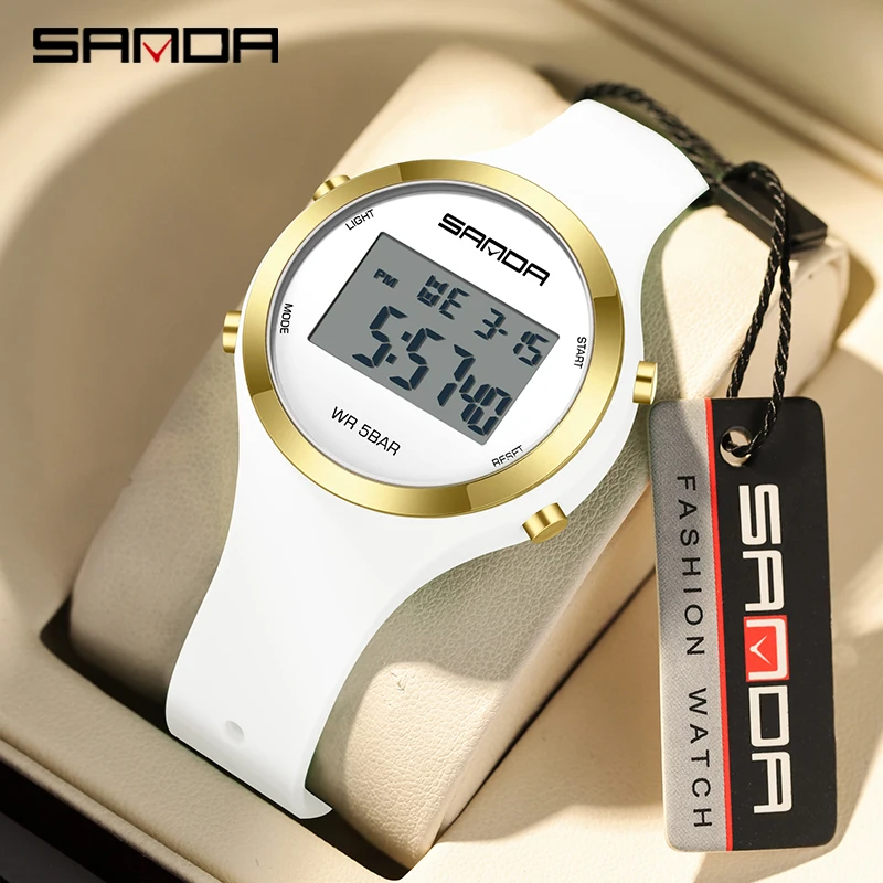 SANDA Digital Watch Women Top Brand Luxury Chronograph Lady LED Wristwatch Elegant Waterproof Female