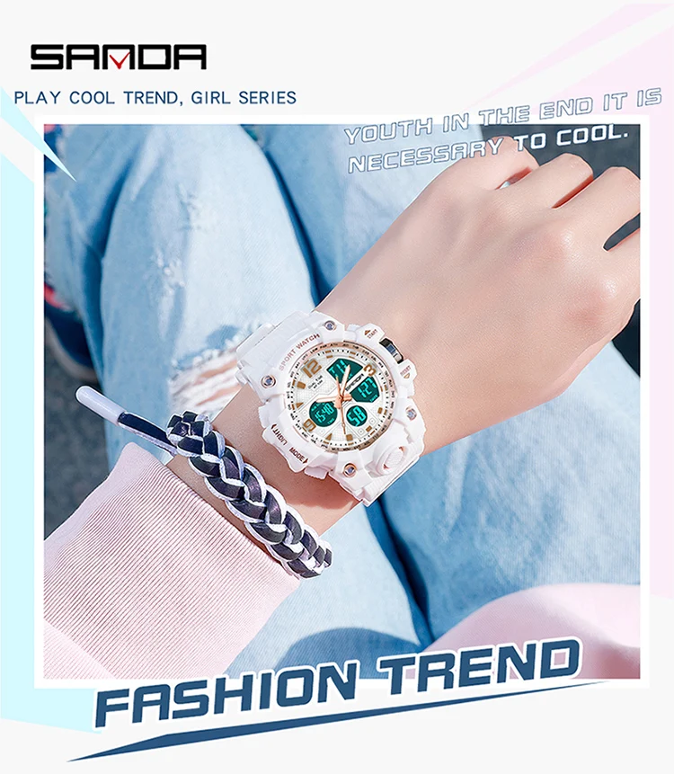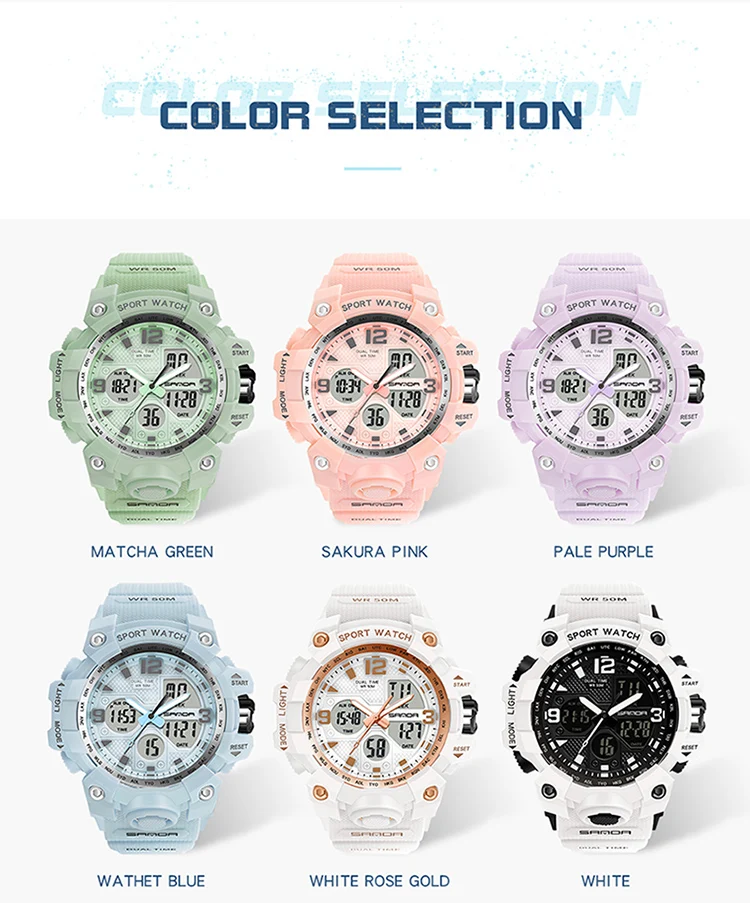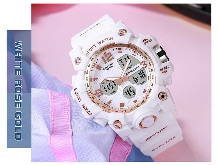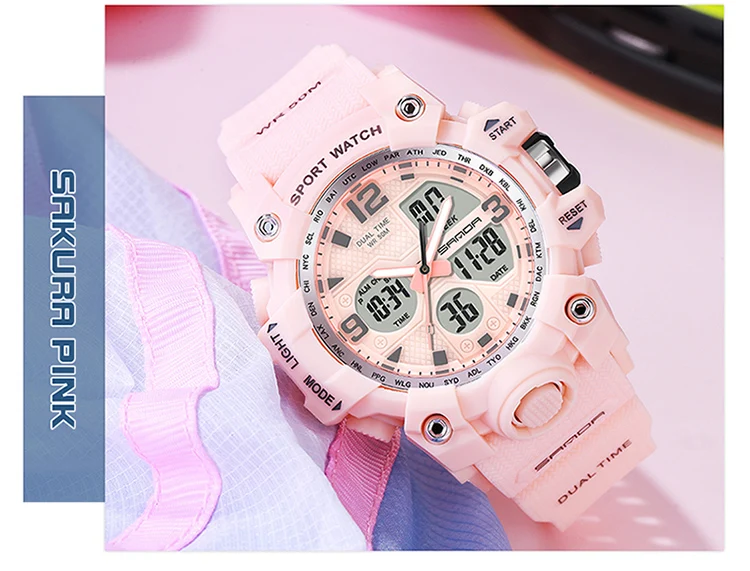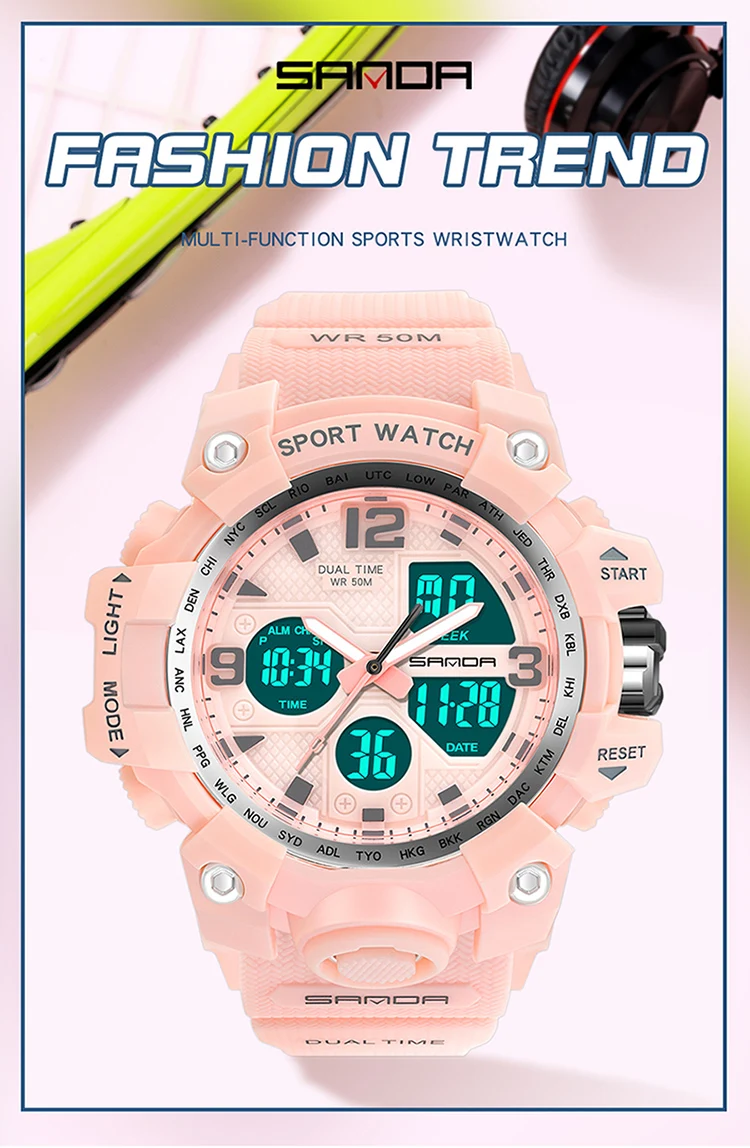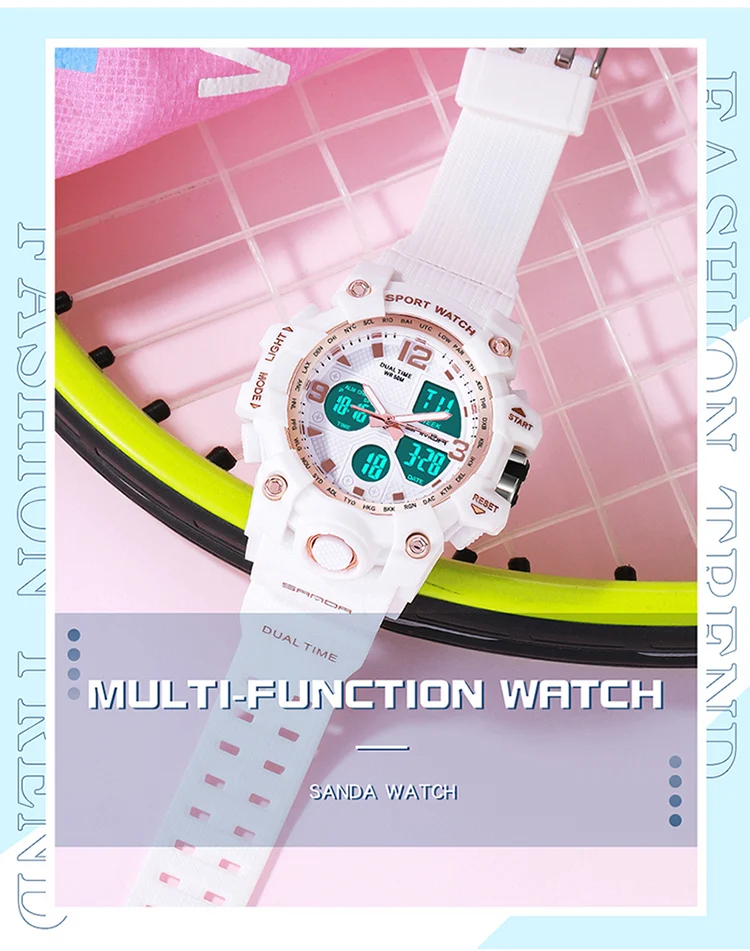 Sanda Fashion Sports Women’s Watches Multifunction Waterproof Watch Analog Digital Wristwatch Casual