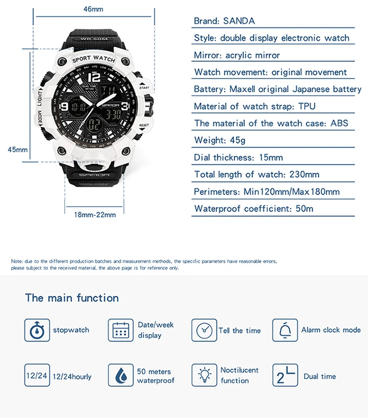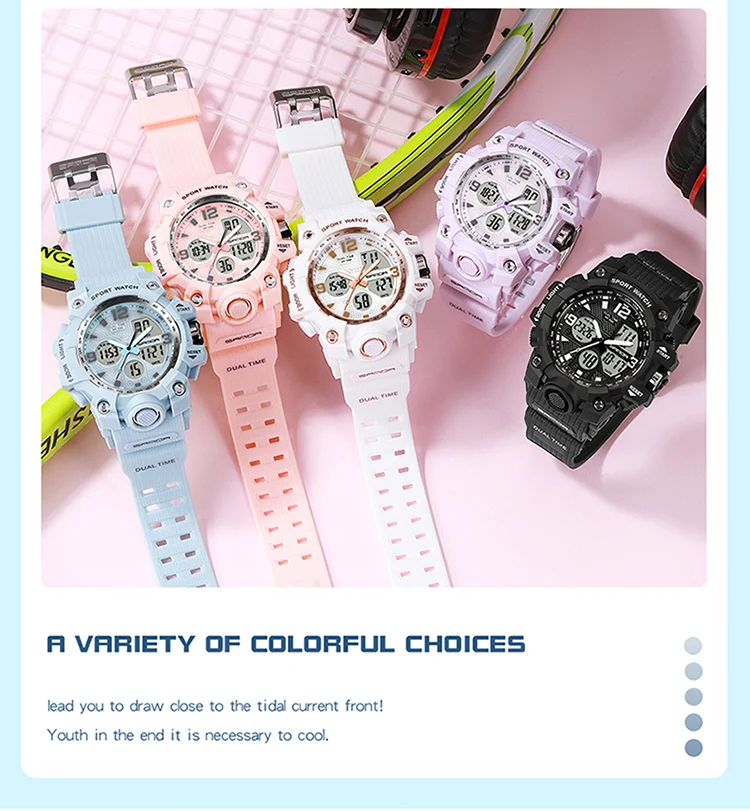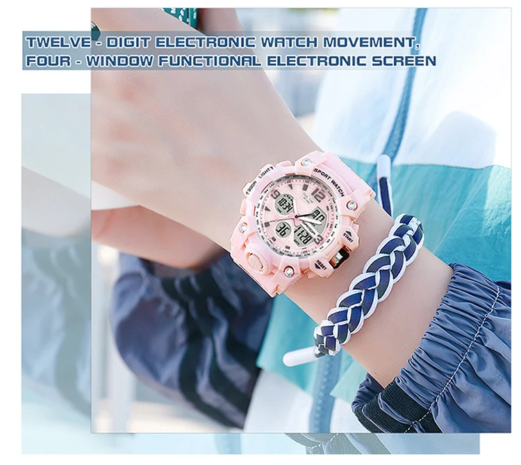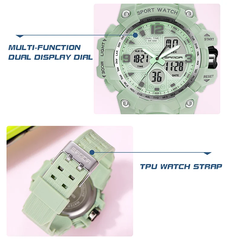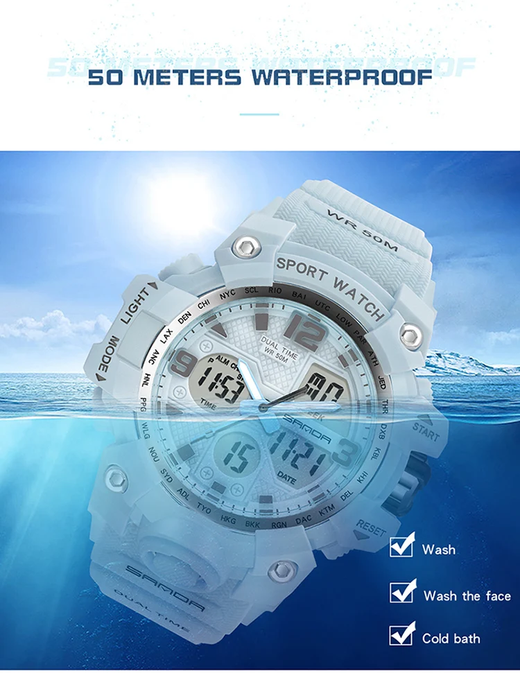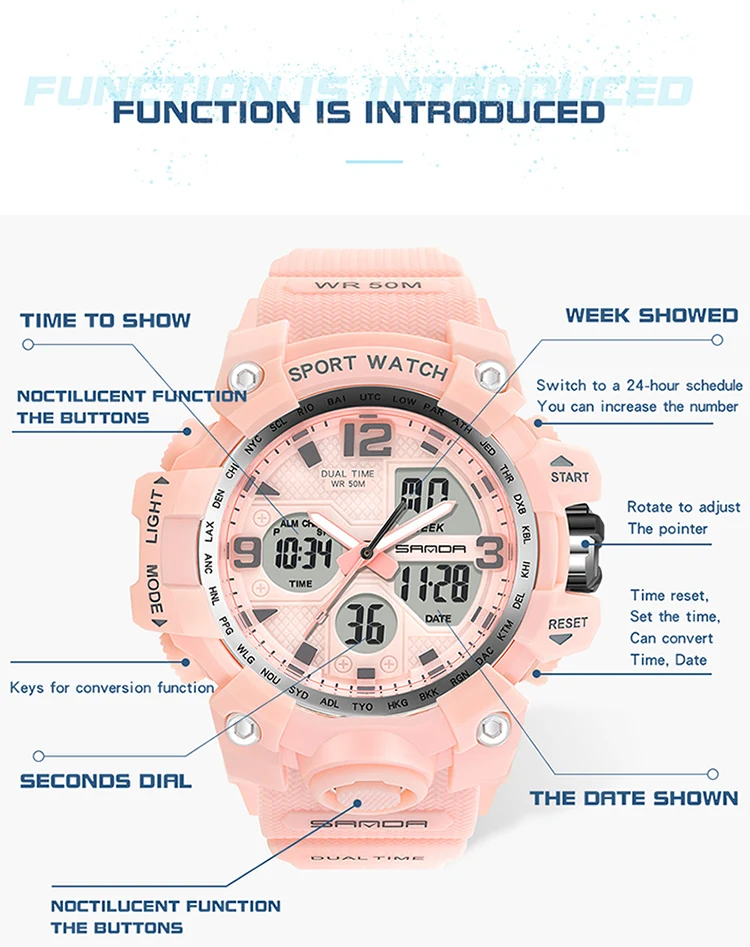 Sanda Fashion Sports Women’s Watches Multifunction Waterproof Watch Analog Digital Wristwatch Casual