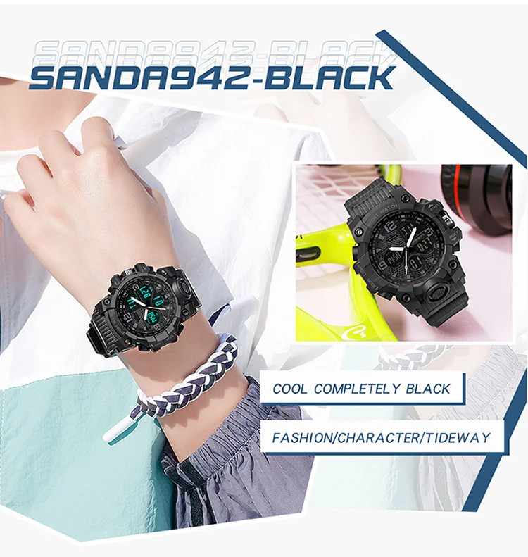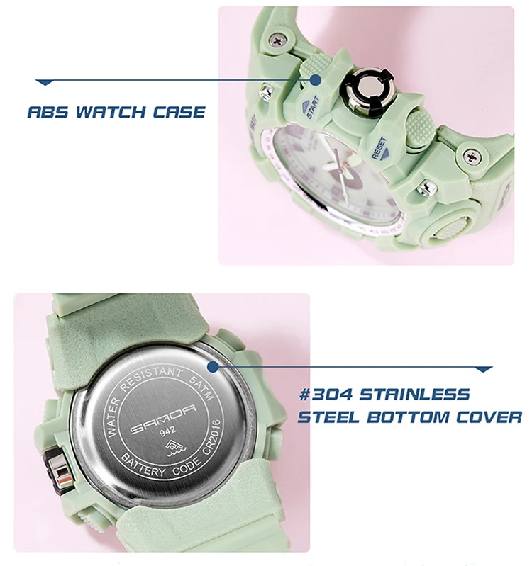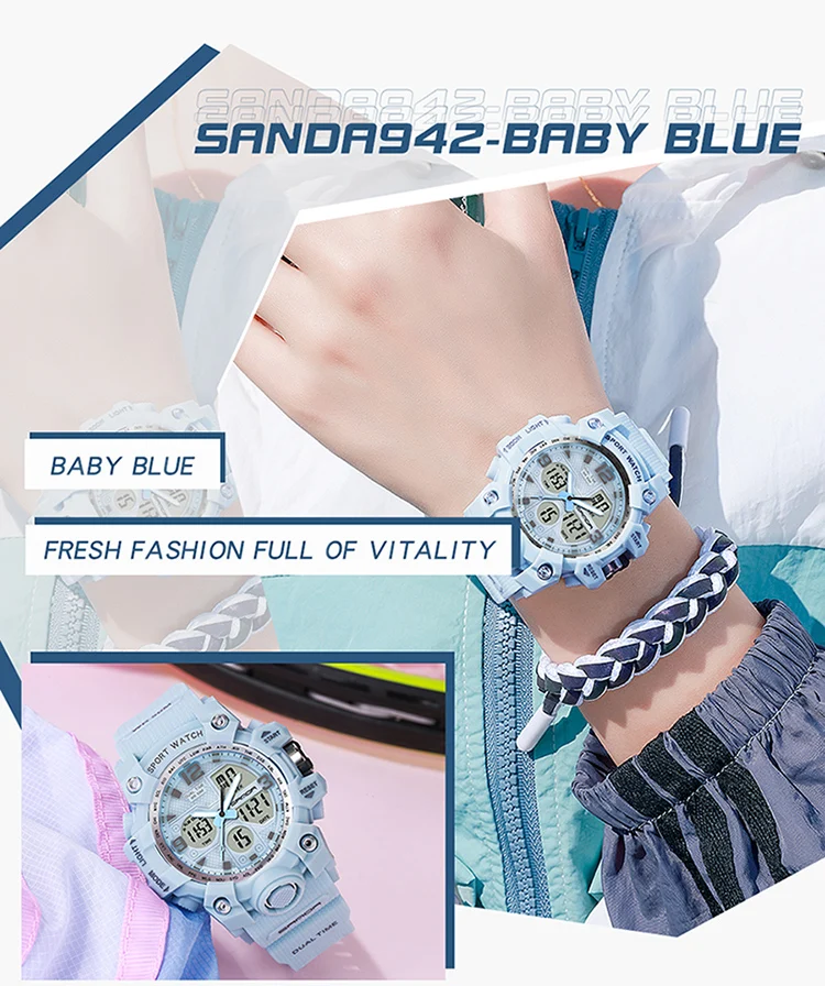 Sanda Fashion Sports Women's Watches Multifunction Waterproof Watch Analog Digital Wristwatch Casual Clock Relogio Feminino 942
