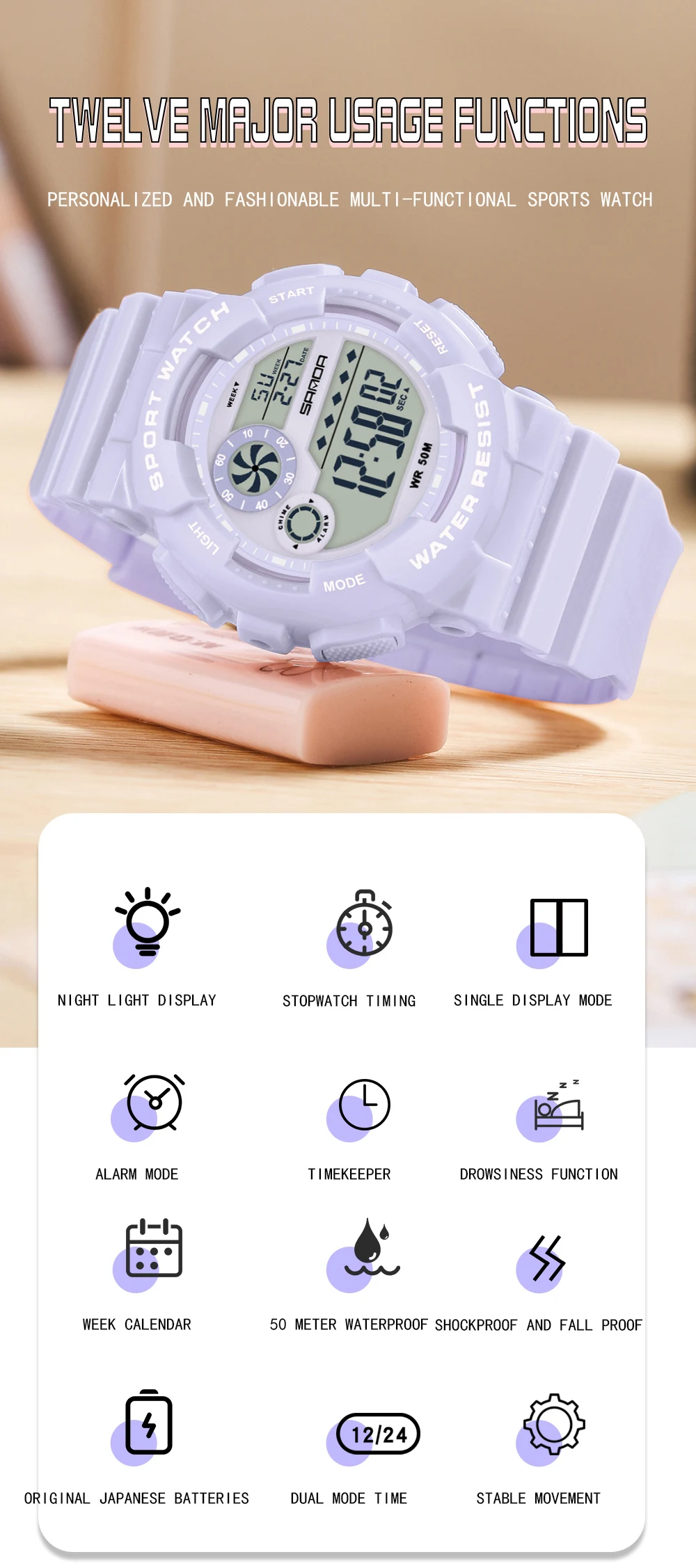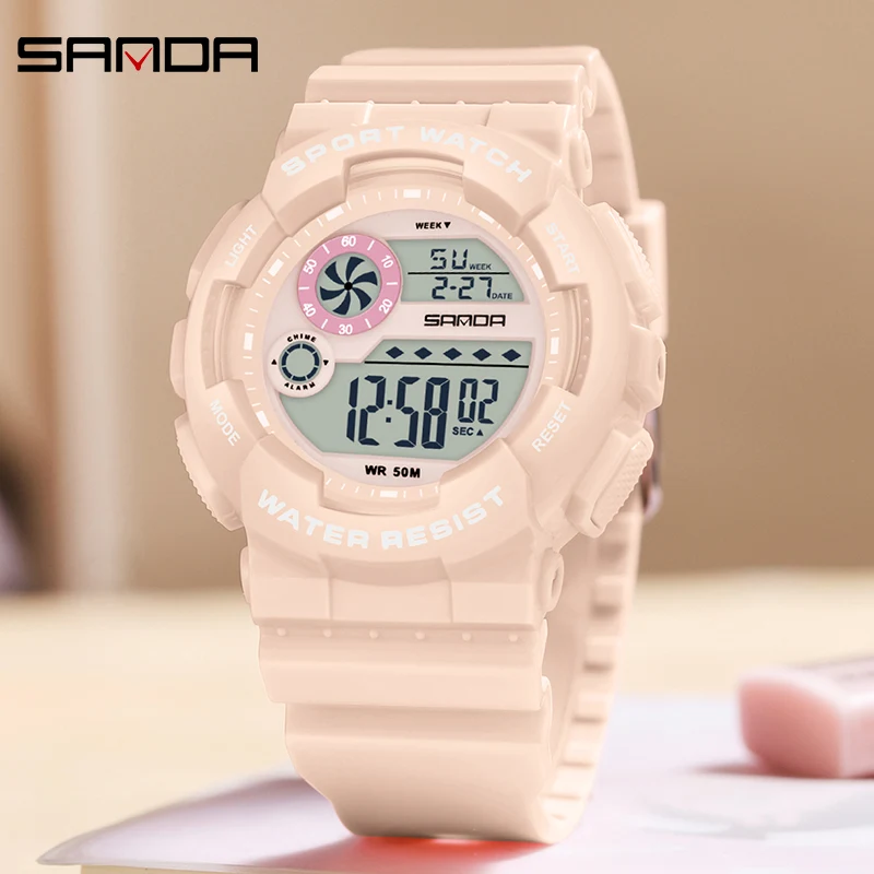 SANDA G Style Fashion Women Watch Sport Alarm Clock Waterproof Stopwatch LED Digital Lady Electronics Chronograph Student Watch