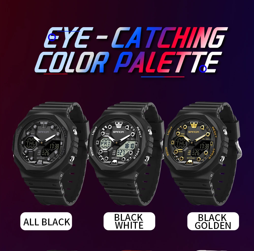 SANDA G style Outdoor Sports Watches Men's LED Digital Wristwatch Military Waterproof Date Electronic Watch Boy Girl Chronograph