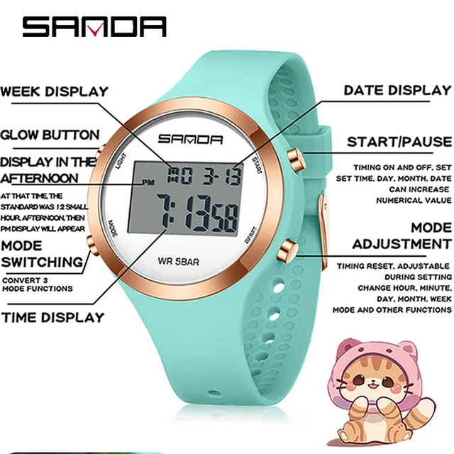 SANDA Girls Digital Watch Women Sports Watch For Women Alarm Clock WristWatch Ladies Waterproof Electronic Watches Children Gift