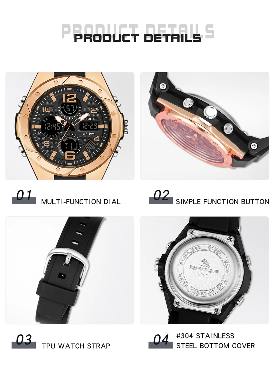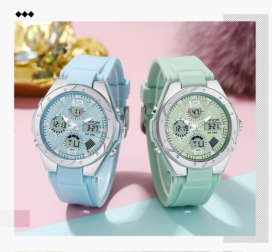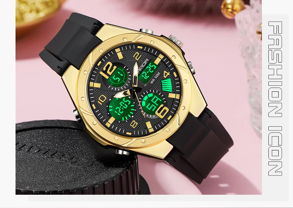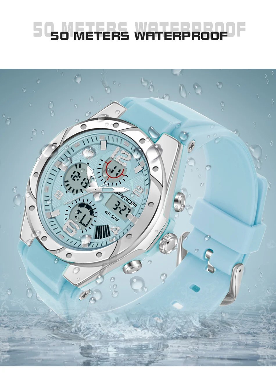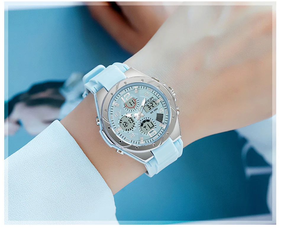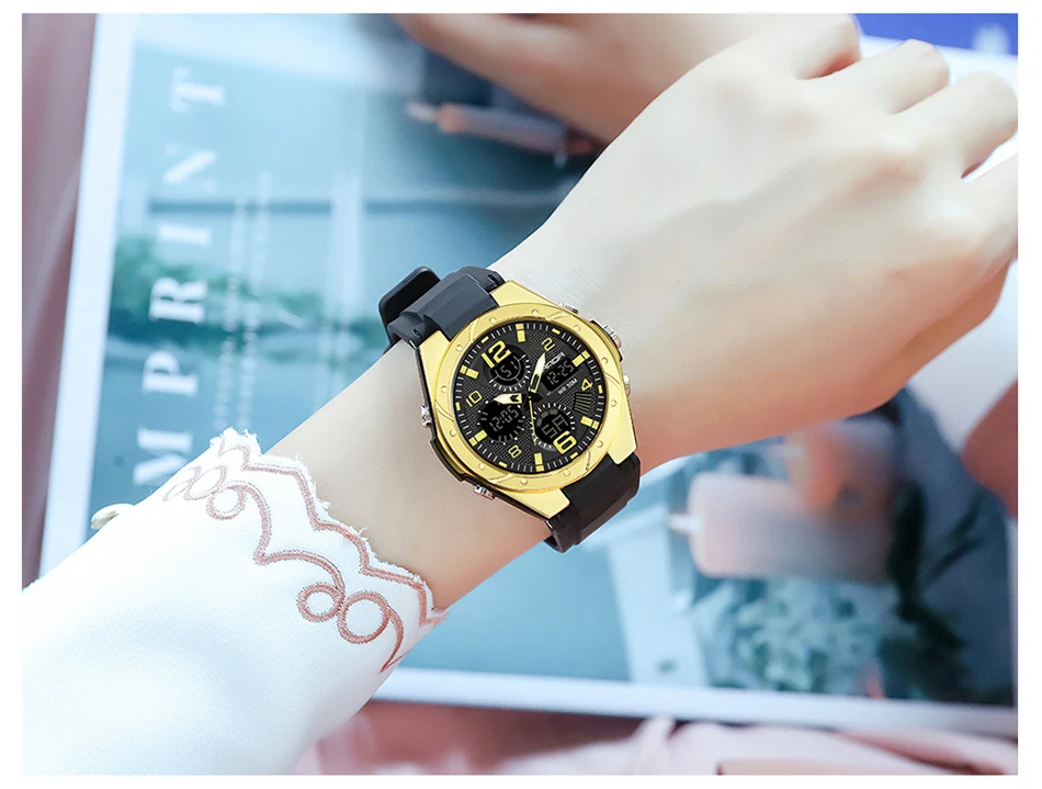 SANDA Luxury Ladies LED Digital Sport Watch Fashion Casual Gold Wrist Watch Women Girl Military Waterproof Quartz Wristwatches