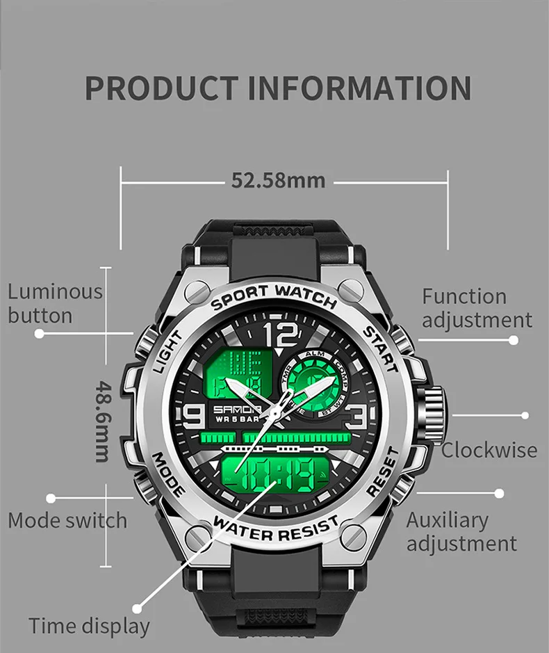 Multifunctional and practical configuration: Integrated stopwatch timing, hour time, luminous display, 12/24 hour switch, week calendar, alarm mode, to meet daily and sports needs.
