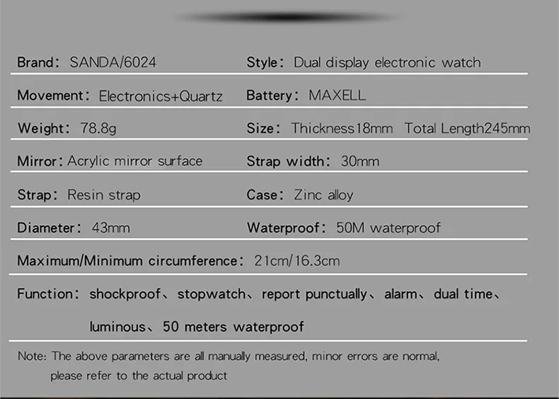 4The size of the watch is manually measured, and there may be some slight errors. Please refer to the actual product.
