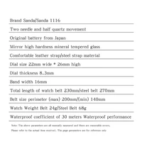 SANDA New Fashion Elegant Design Rectangle Dial Water Resistant Leather Quartz Movement Business Gift