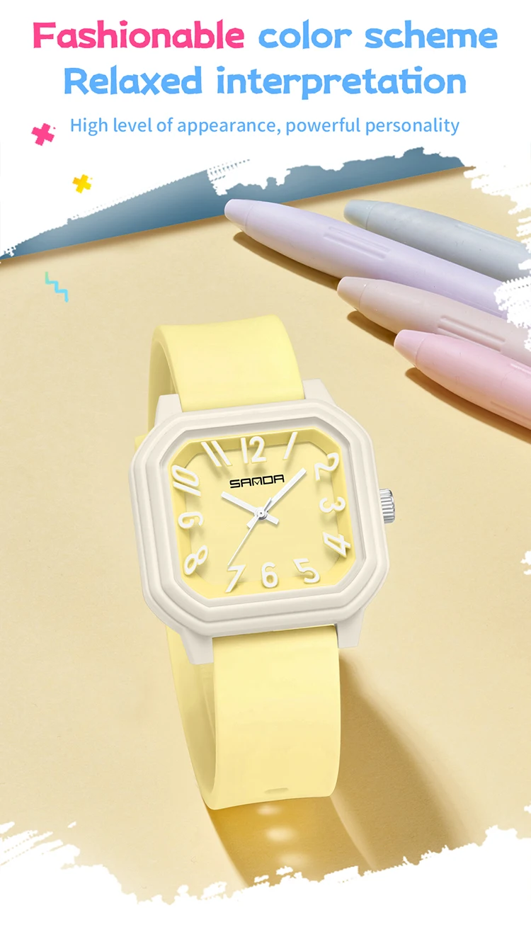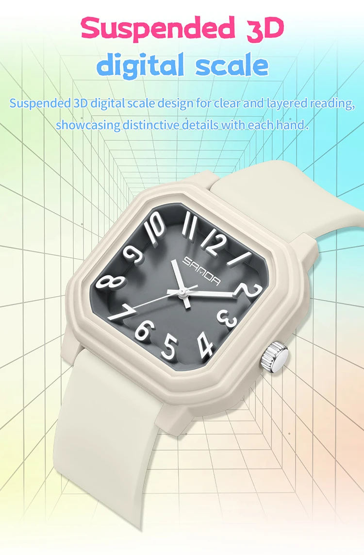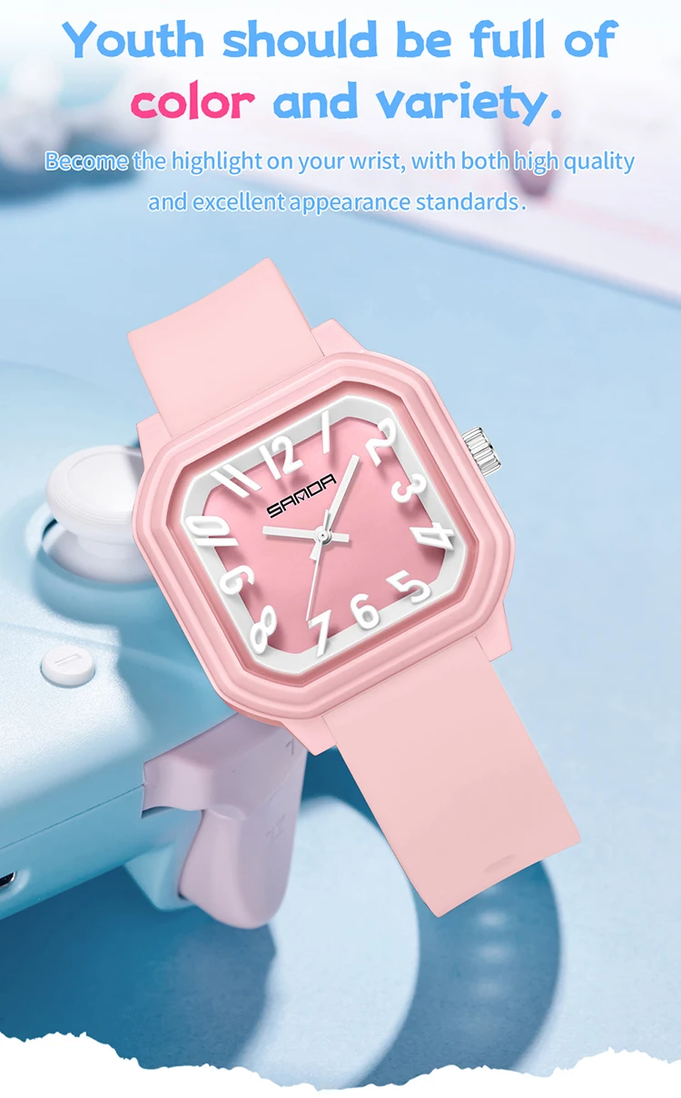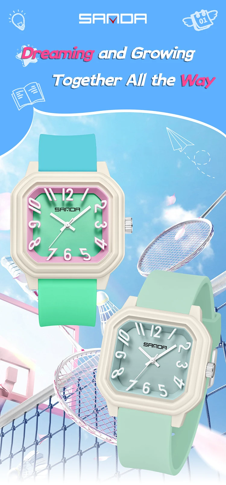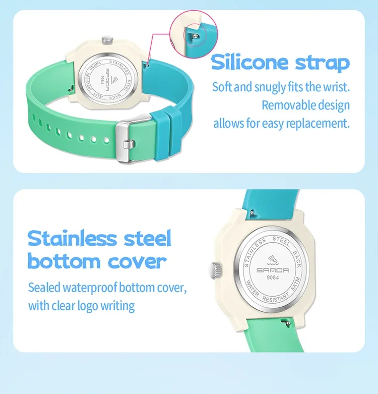 SANDA SD9084 Fashion Students Quartz Watch Simple Waterproof Silicone Strap Casual Sports Boys Girls Watches