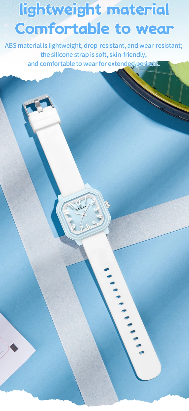 SANDA SD9084 Fashion Students Quartz Watch Simple Waterproof Silicone Strap Casual Sports Boys Girls