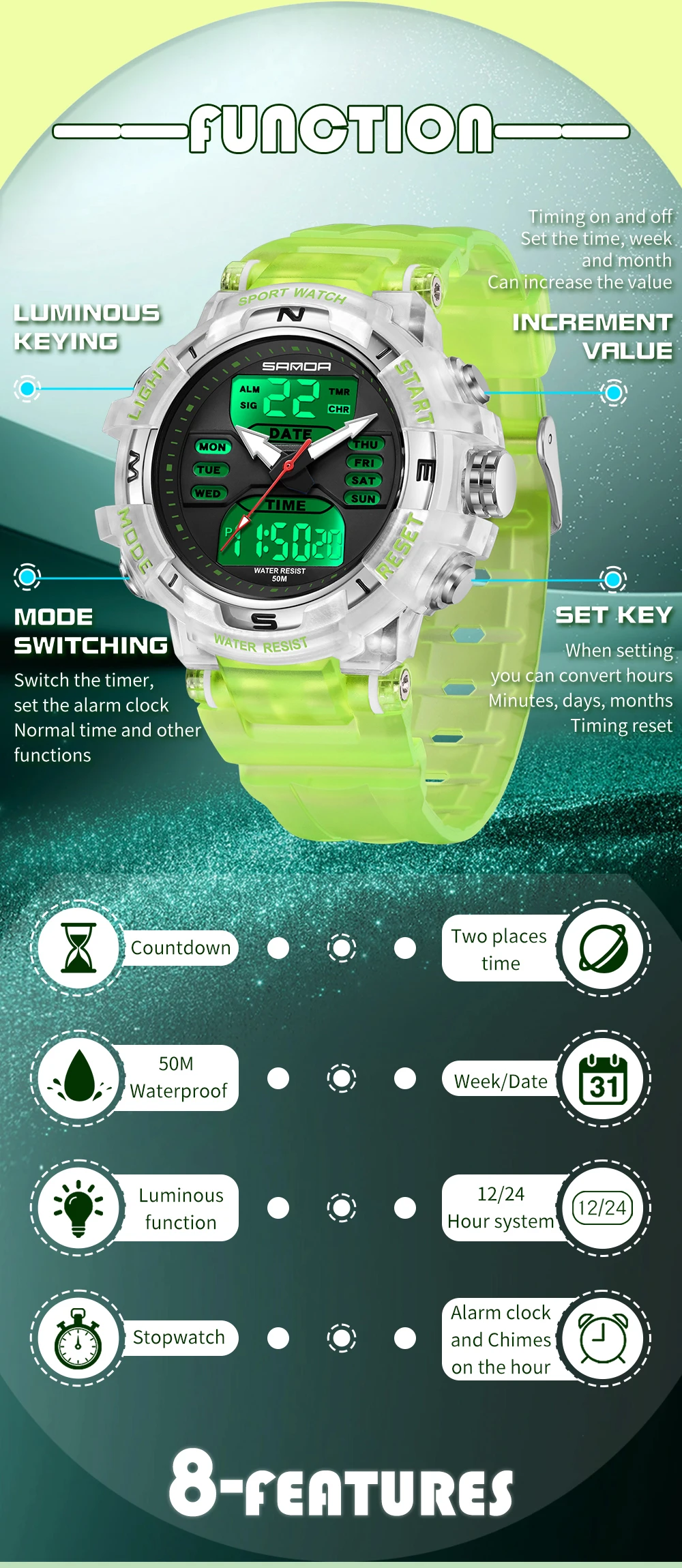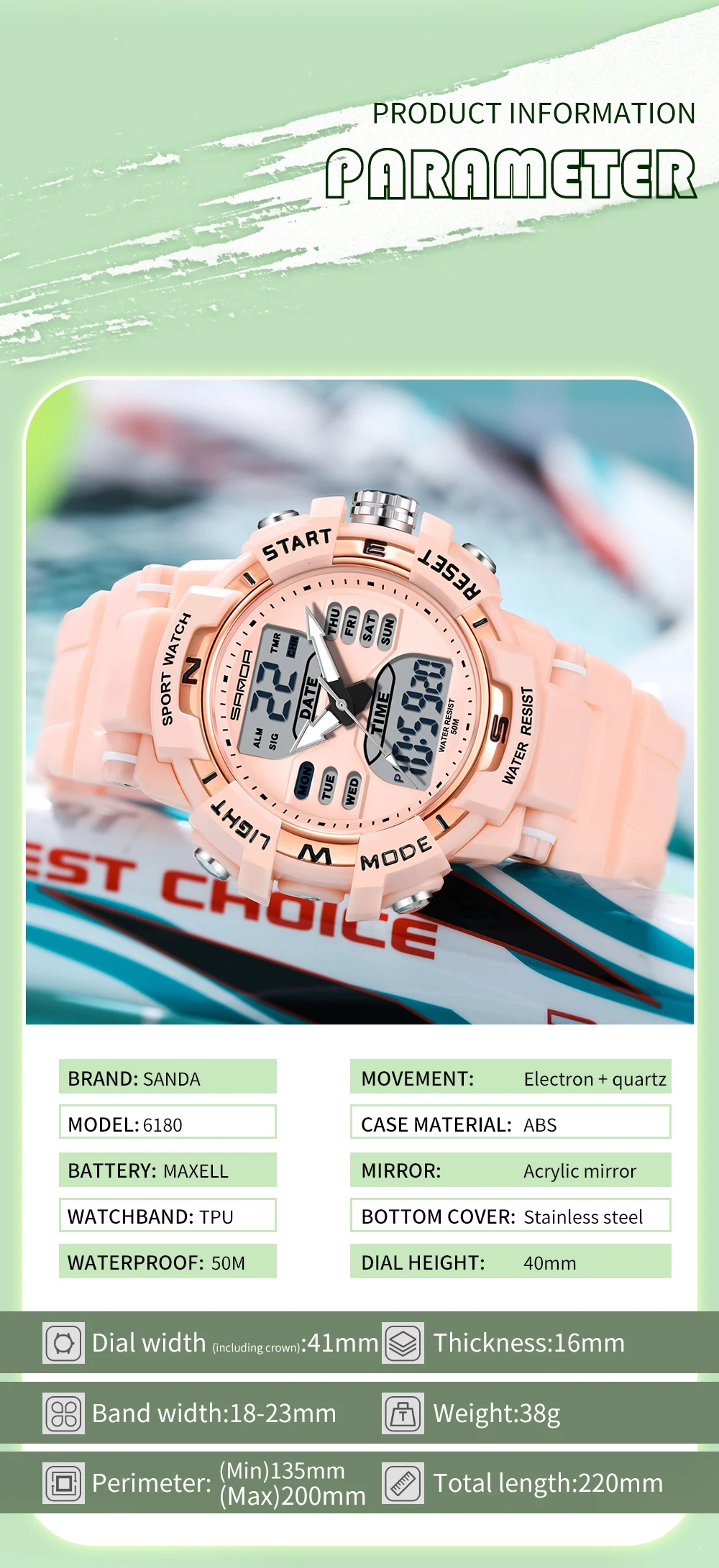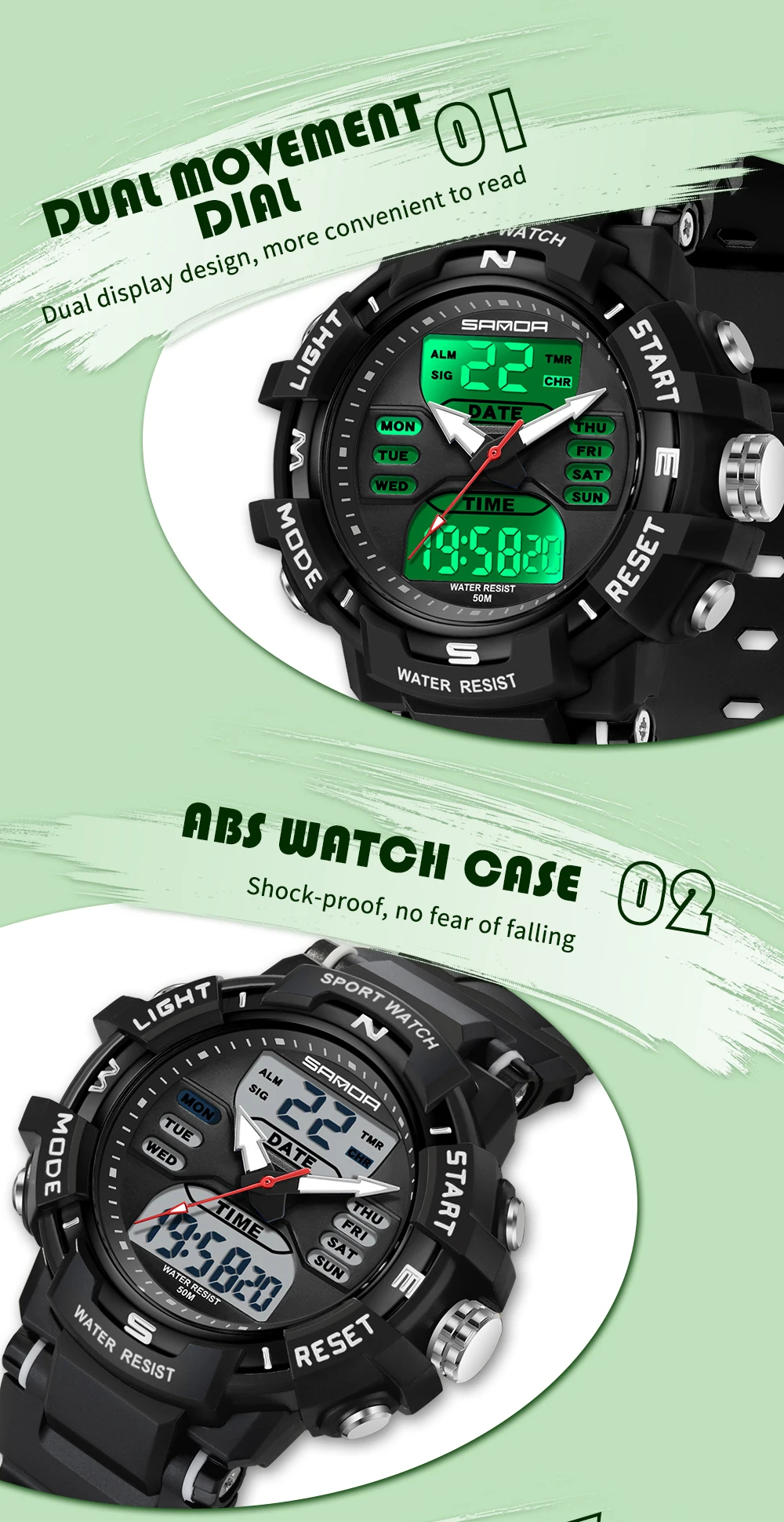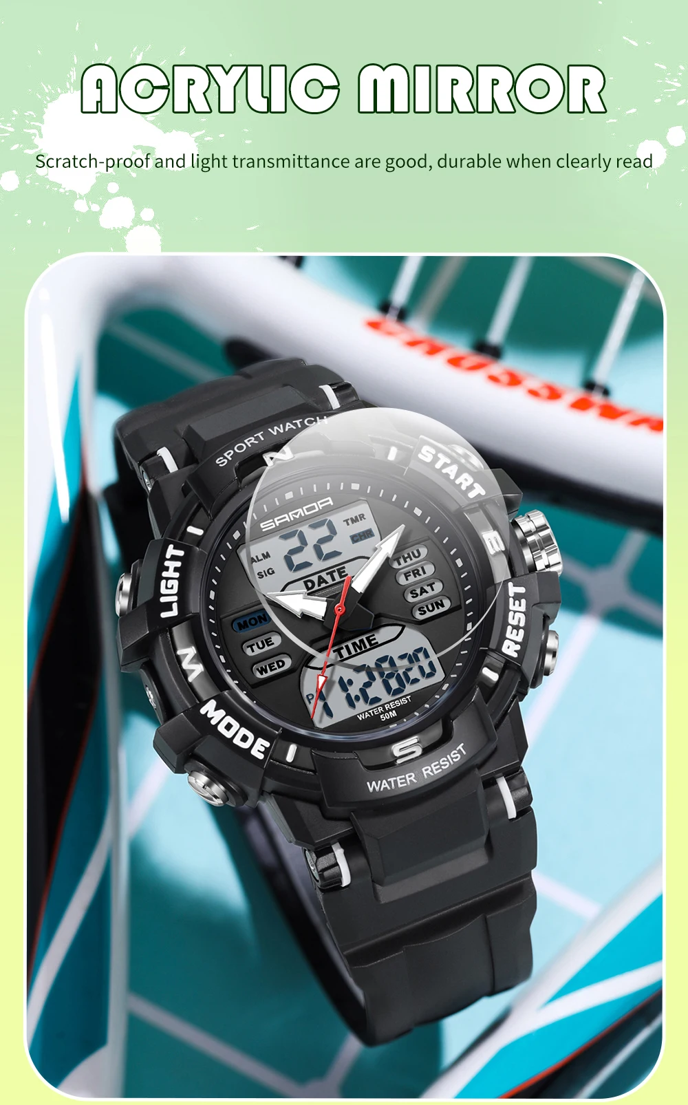 • Digital Movement :Experience the convenience of digital movement with this SANDA wristwatch. It’s easy to read and provides accurate time information.