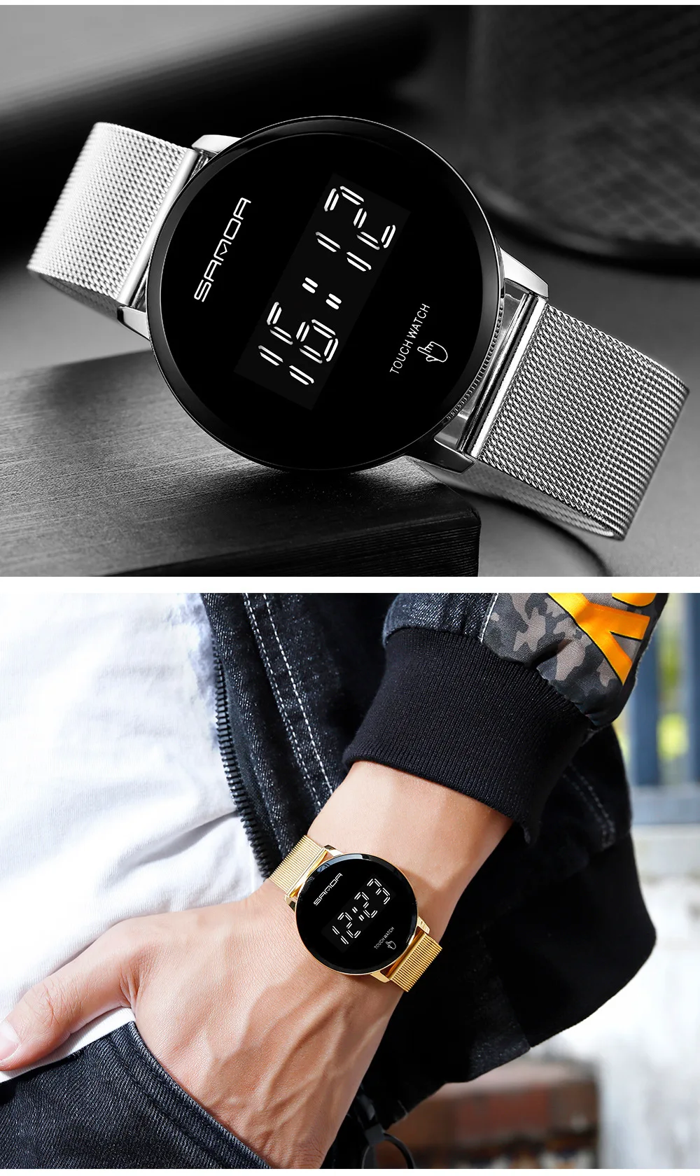 SKMEI 2285 Luxury Digital Watch for Men Stainless Steel Sports Waterproof LED Display Mens Wristwatches Alarm Clock Reloj Mujer