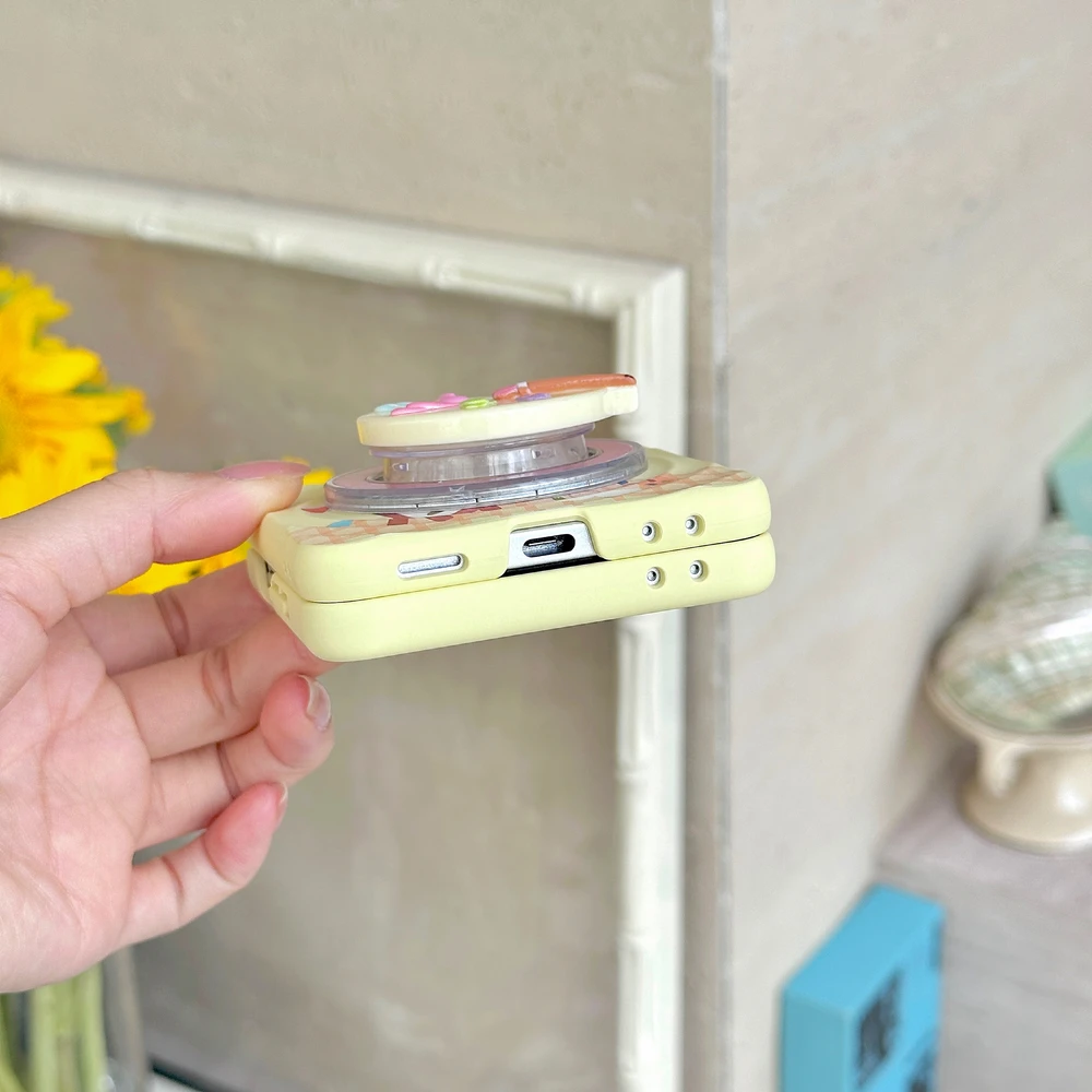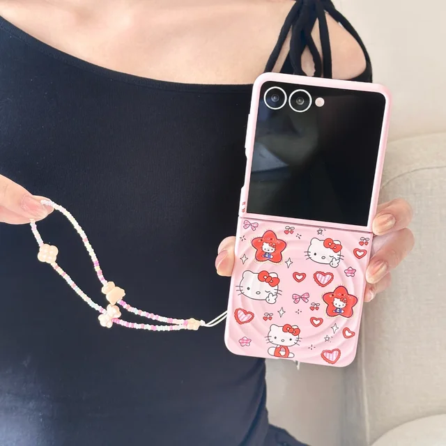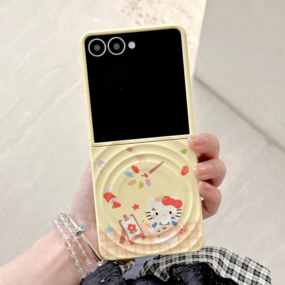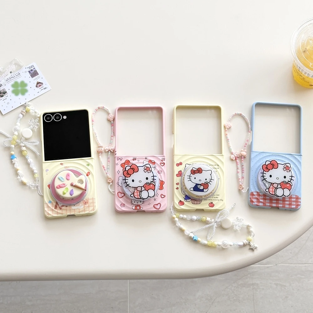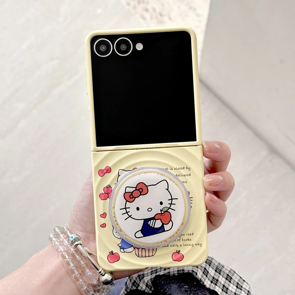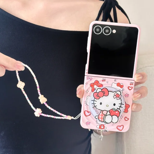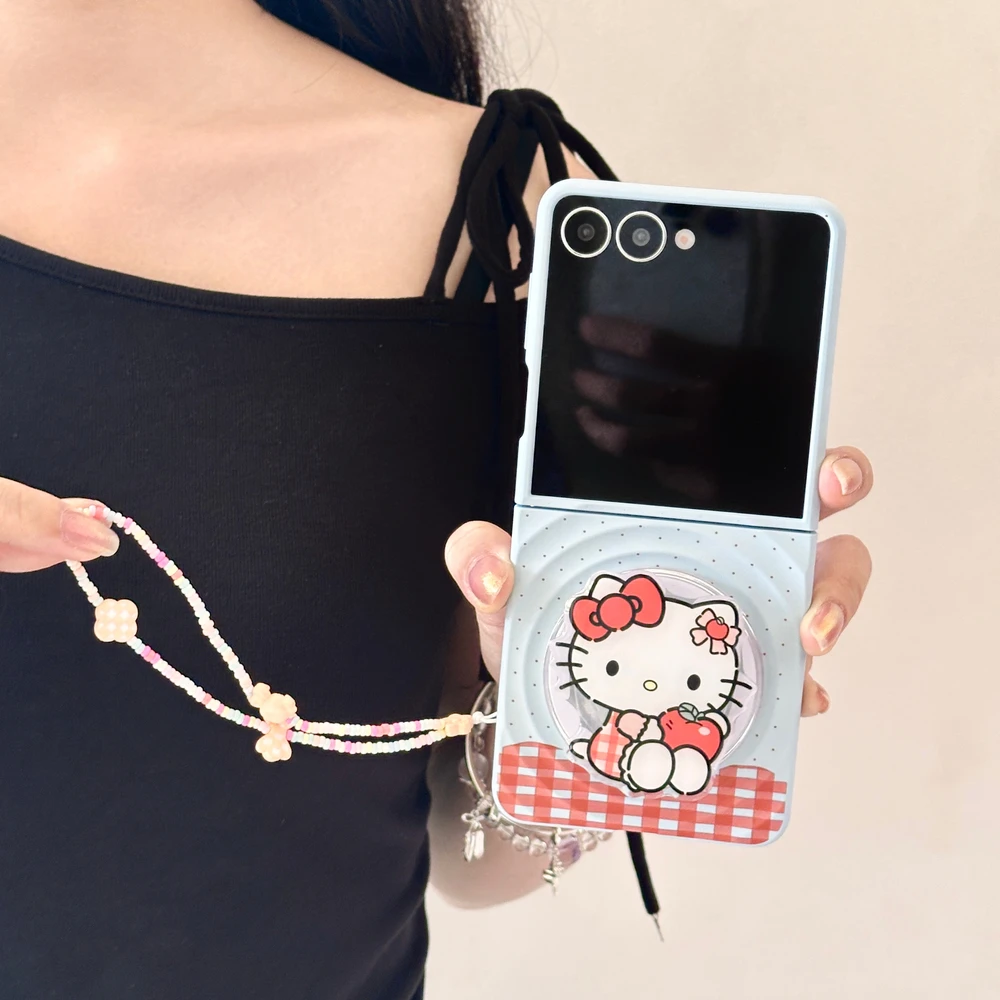 Sanrio Hello Kitty Magnetic Grip Holder Magsafe Wireless Charge Cute Cartoon Phone Case For Samsung Galaxy Z Flip 7 6 5 4 Cover