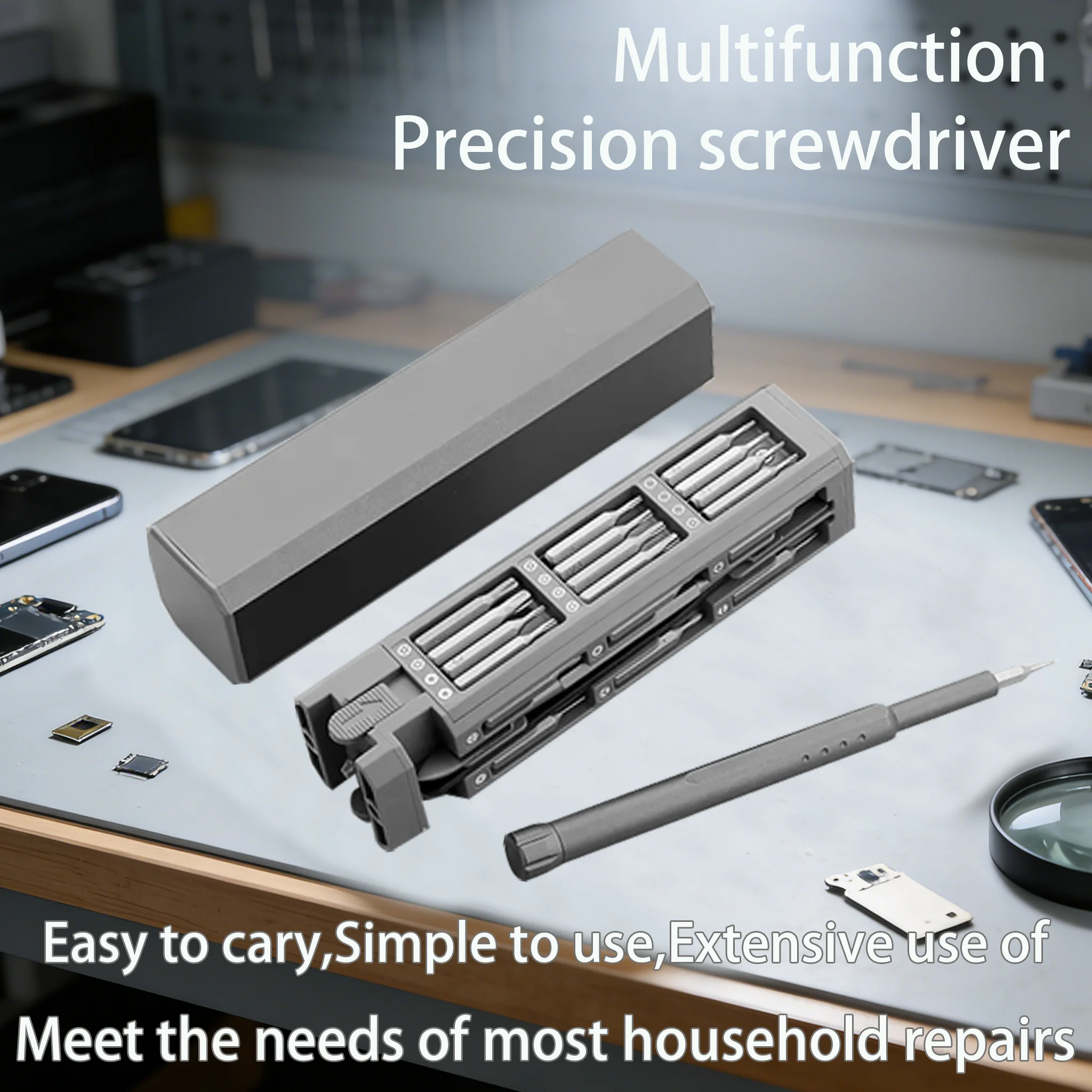 [PORTABLE ALUMINIUM STORAGE BOX] The durable aluminum shell is anodic oxidization, it is not easy to rust, and it can be easily placed in a tool bag or pocket. The storage box has a built-in eject button, which can be easily removed and locked. The magnetic box helps hold all the screws in place so that they do not fall off