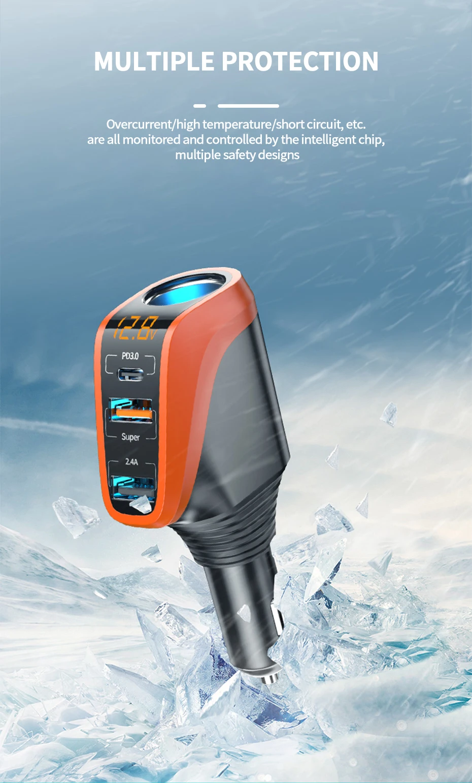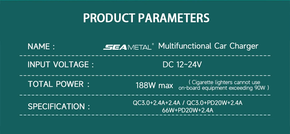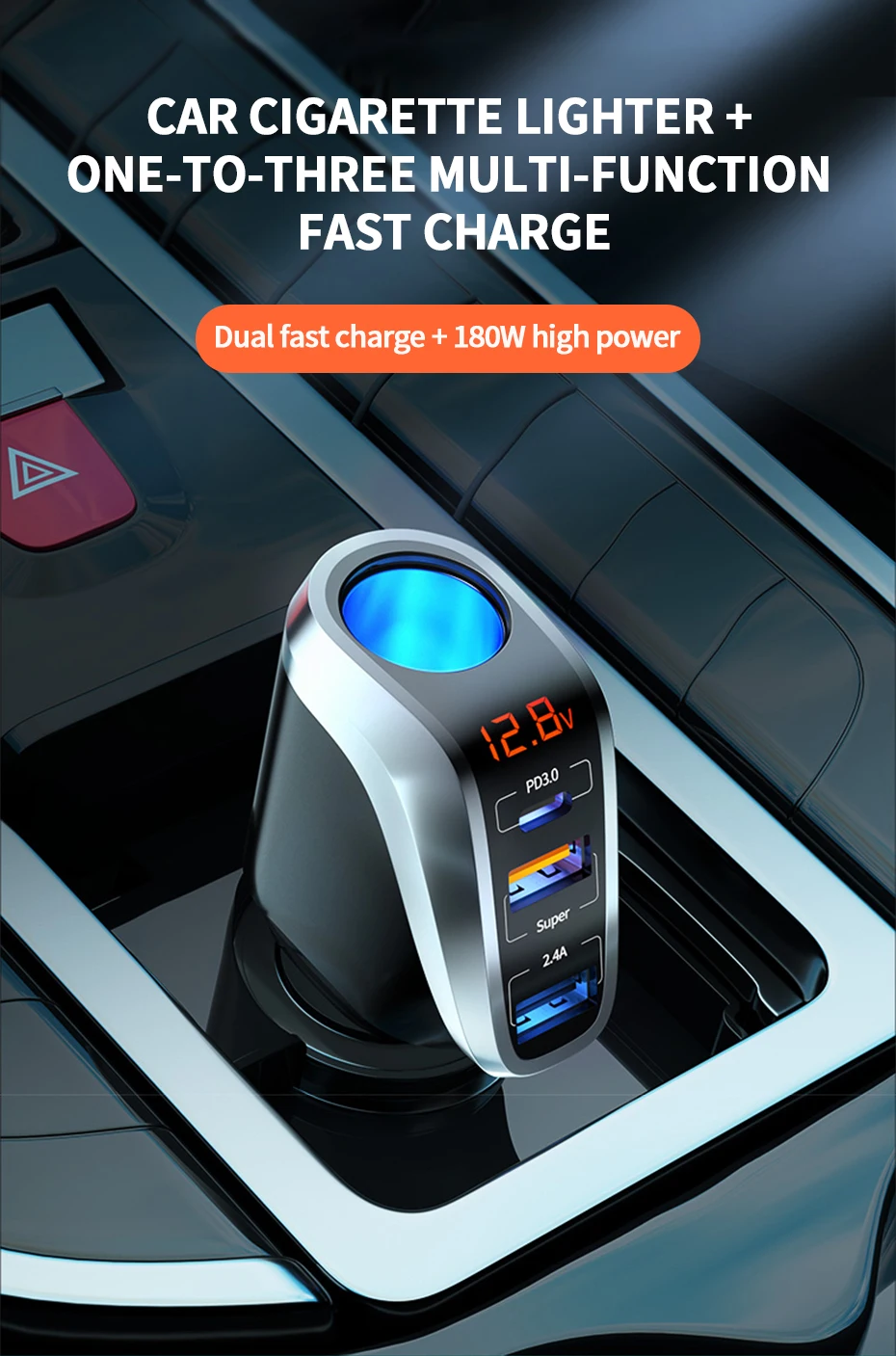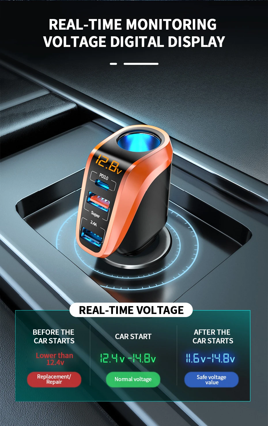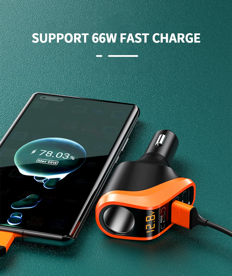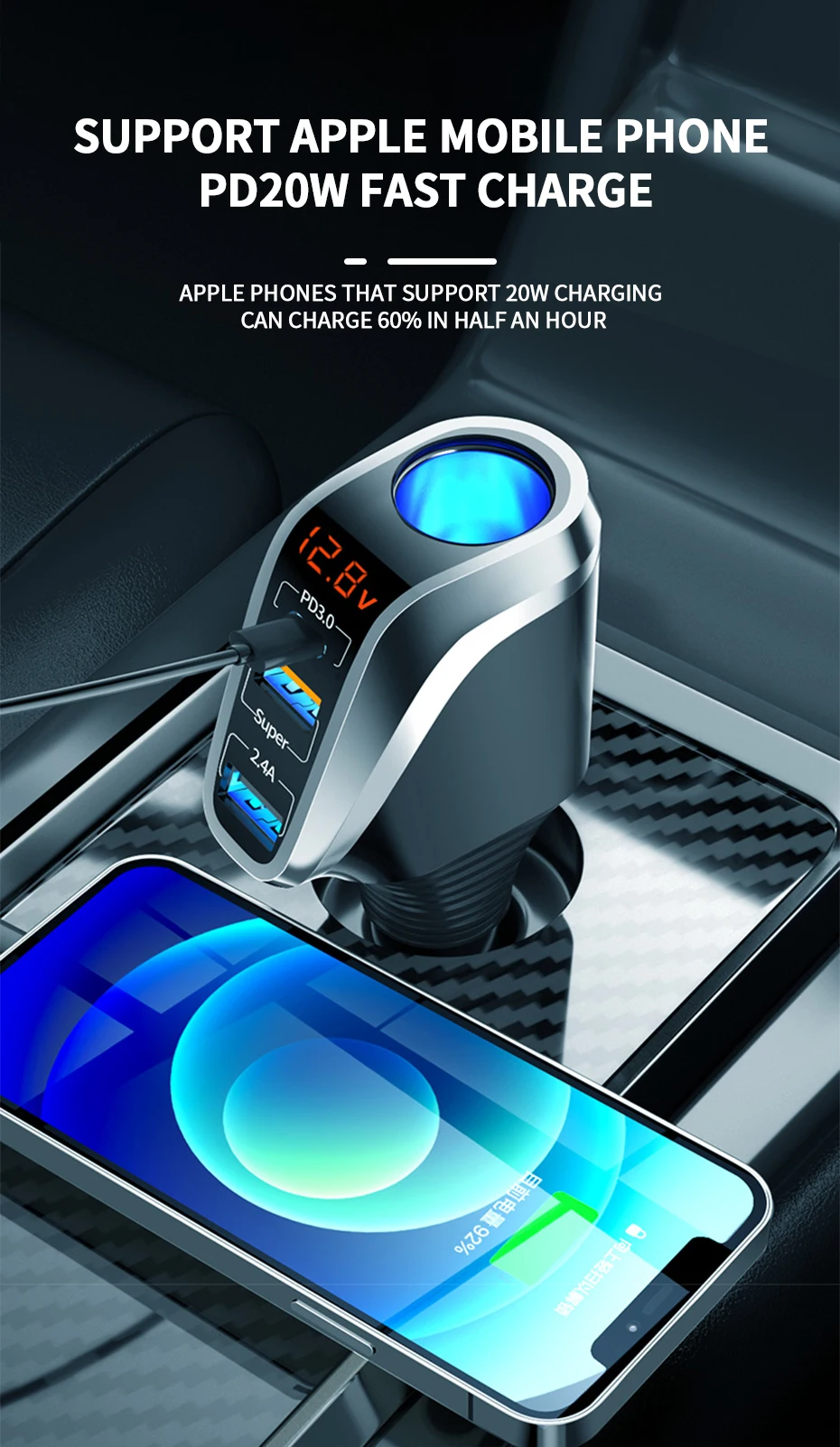 SEAMETAL 66W Car Charger PD20W QC3.0 Port USB Type Fast Charging Phone Charger 12V/24V Universal Cigarette Lighter Power Adapter