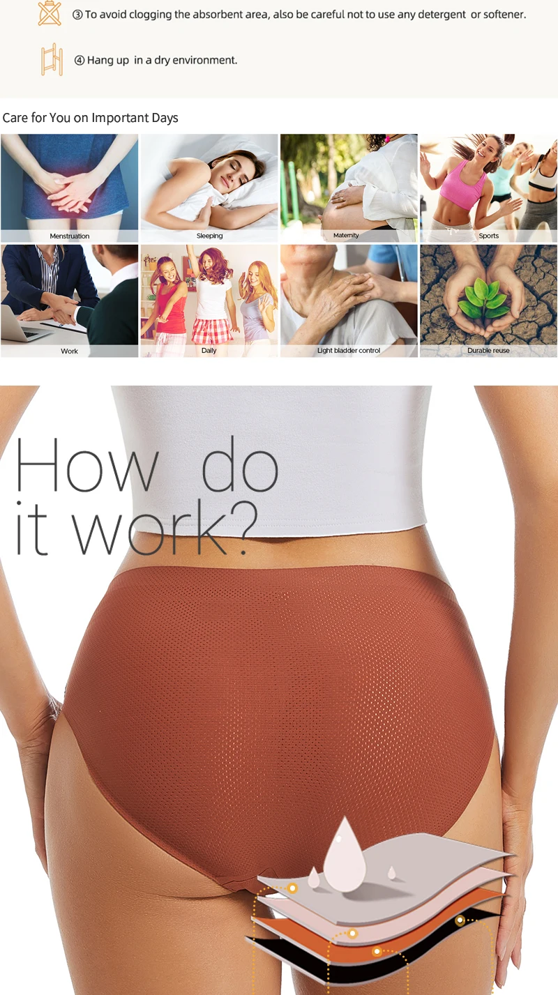 Seamless Menstrual Panties Absorption Maternity Physiological Incontinence Breathable Briefs Waterproof Period Women Underwear