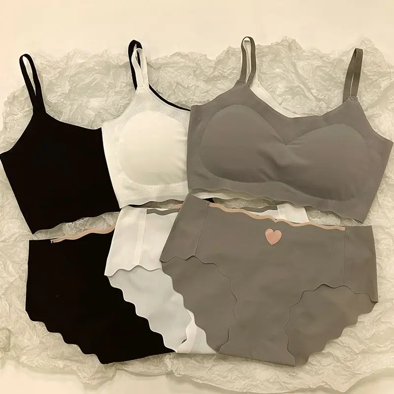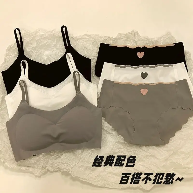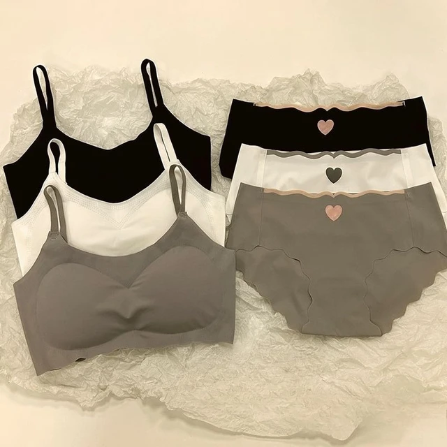 Seamless Push-Up Bra Panty Set for Teens Wire-Free Sport Bralette Vest Top Non-Padded Student Comfort