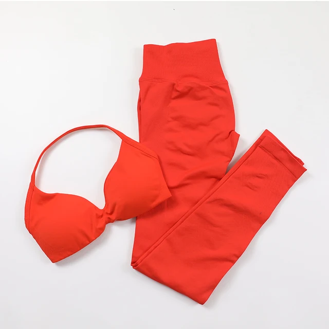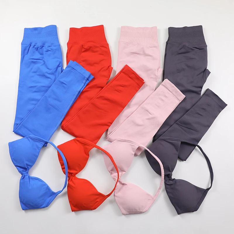 2 Piece Seamless Yoga Set Women Fitness Clothing Scrunch Gym Legging Strappy Bra Workout Clothes Woman Pilates Sportswear