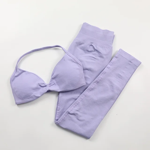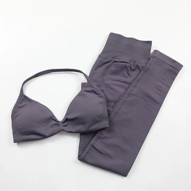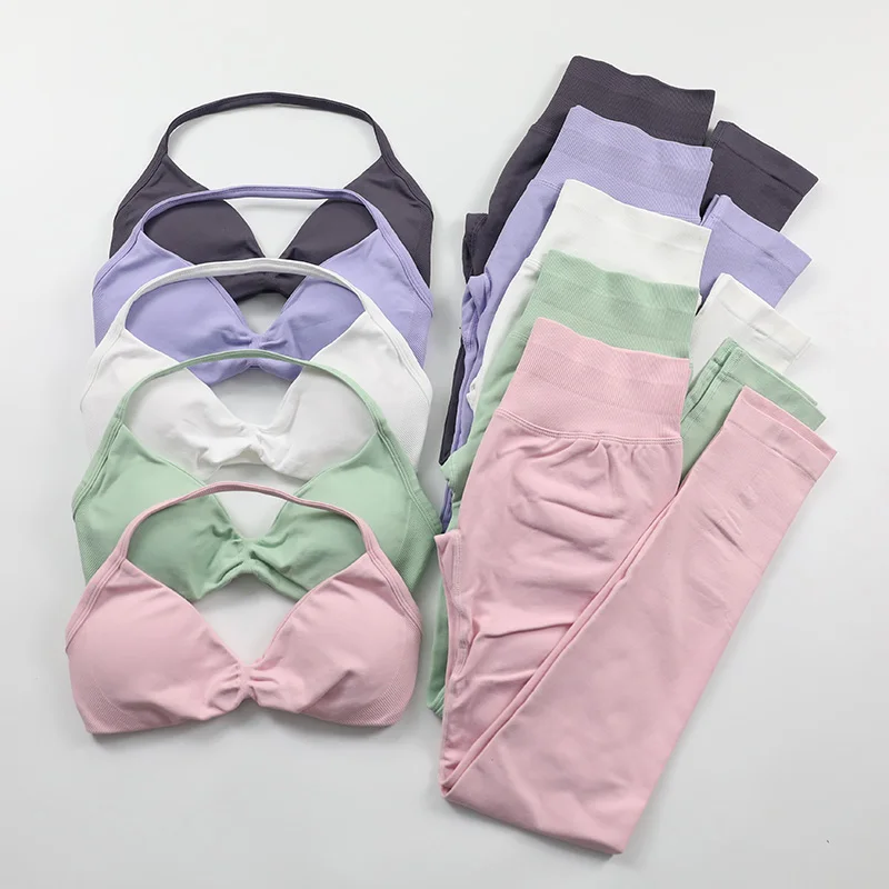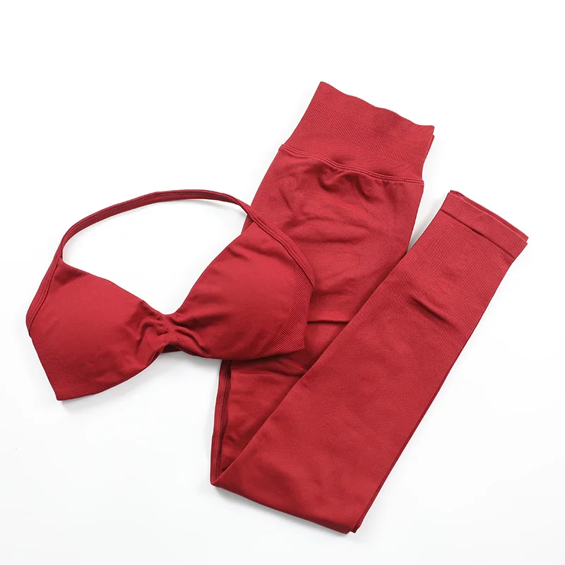 Seamless Yoga Set Women 2 Pcs Scrunch Gym Leggings Rouched Halter Sports Bra Workout Clothes Woman Gym