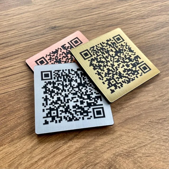 Self Adhesive Metallic QR Code Plaques Custom Engraved Signs for Tables, Durable Restaurant Café Product Labels, Waterproof Tags
