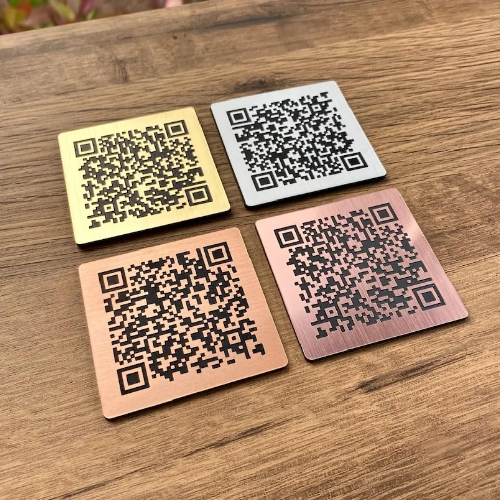 Looking for a sleek and durable way to display QR codes on your tables or products? Our custom metallic-effect plaques are the perfect solution for restaurants, cafés, bars, retail counters or to attach to products. Use them for menus, ordering, product info, or reviews – all in a stylish, space-saving format.