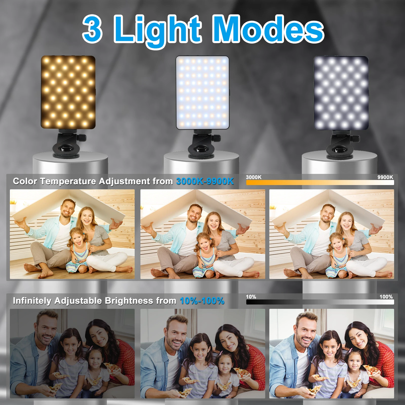 【3 Light Modes Phone Light Clip】The selfie phone light has built-in 72 high-power LED light beads, solving the problem of light and improving the quality of night photography. It has 3 light modes (Warm Light, Neutural Light, Cold Light) and color temperature adjustments from 3000K-9900K, which are provided to meet your various usage needs and ensure you always look your best, such as makeup lighting, selfie, video recording, video conferencing, vlog show, live streaming.