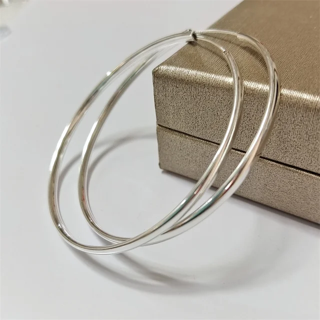 Senlissi - New 18K Gold Plated Hoop Earrings For Women 925 Sterling Silver 3.0mm Fashion Earring Cерьги Kольца 3/4/5/6/7CM