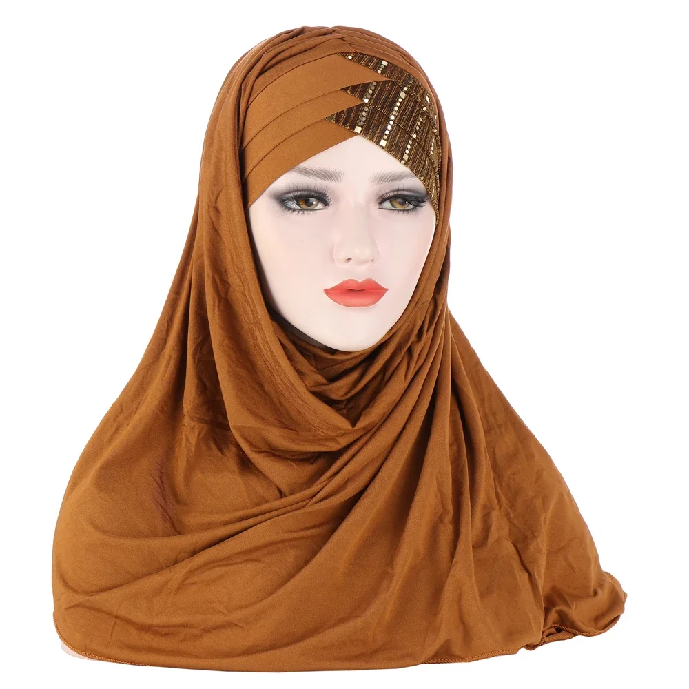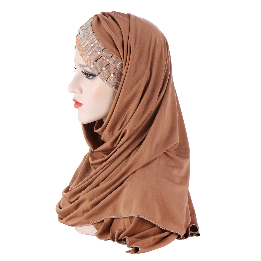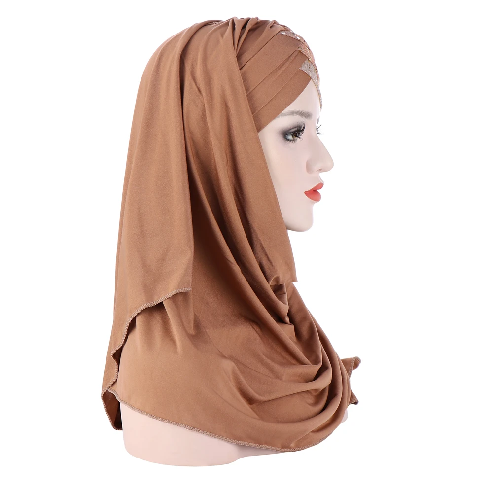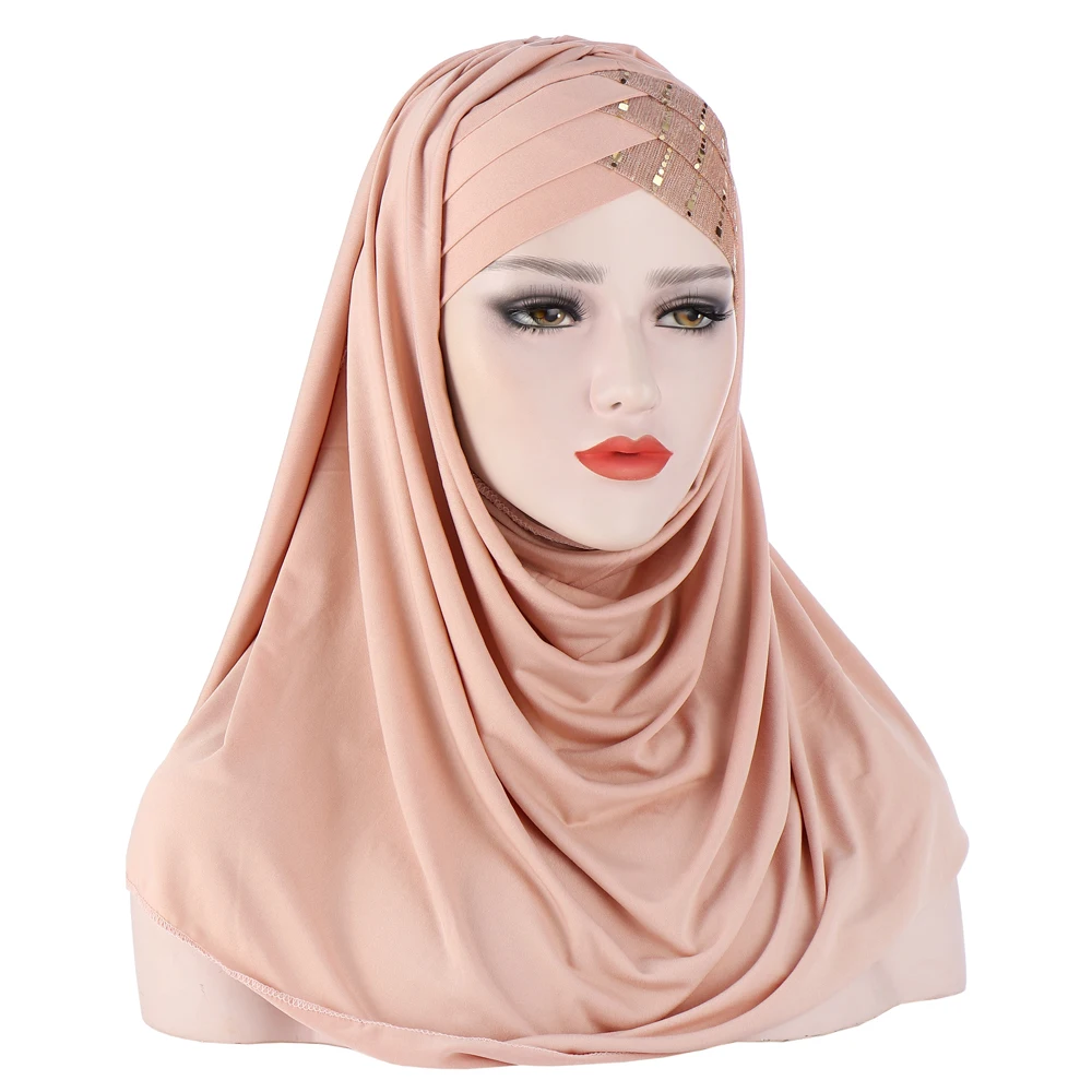 Sequins Underscarf One Piece Amira Cross Instant Scarf Women Muslim Hijab Turban Pull On Shawls Wrap