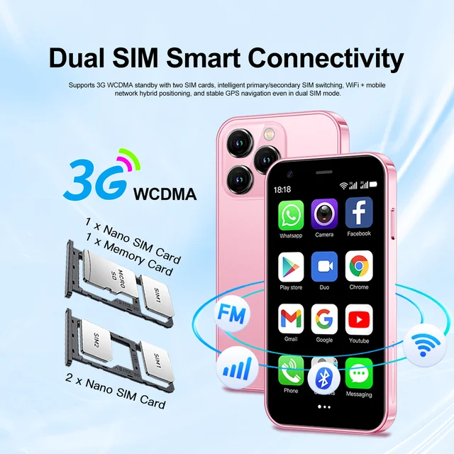 SERVO Mini Smartphone 3.0" Display 2GB+16GB 3G WCDMA Facial Recognition WiFi GPS Play Store Android Smart Phone Dual SIM Standby