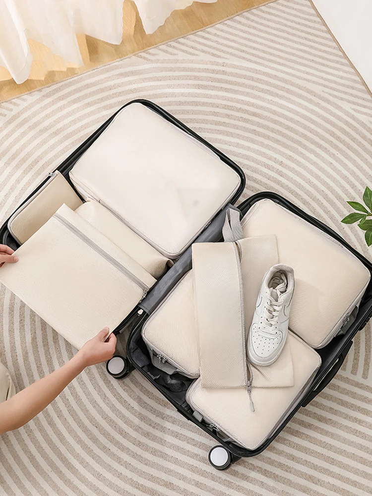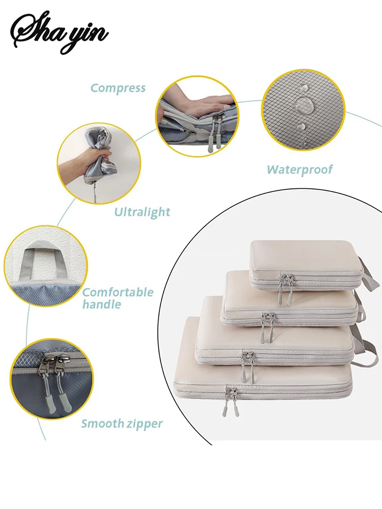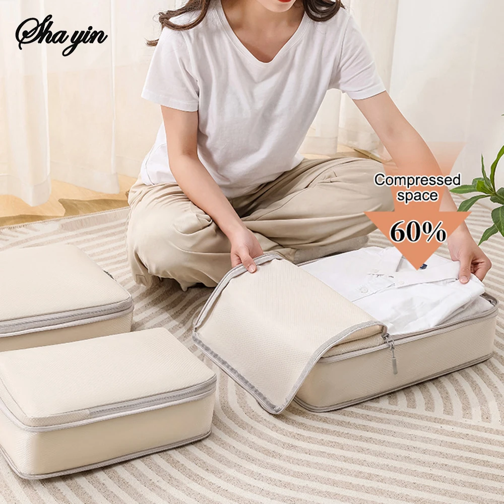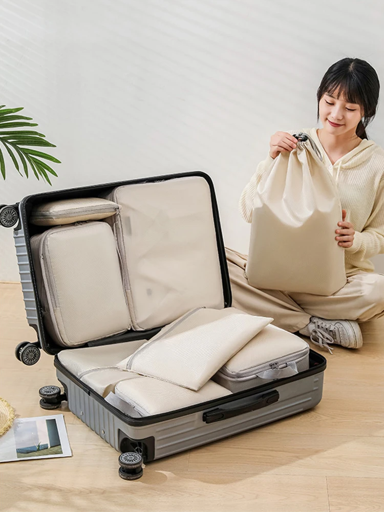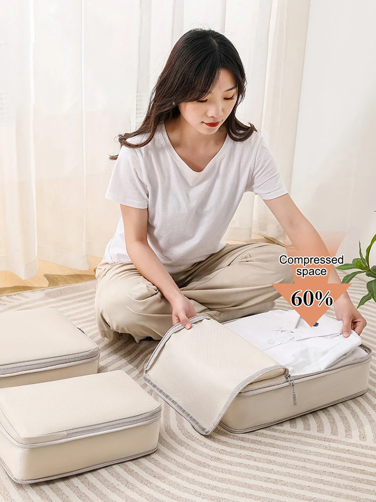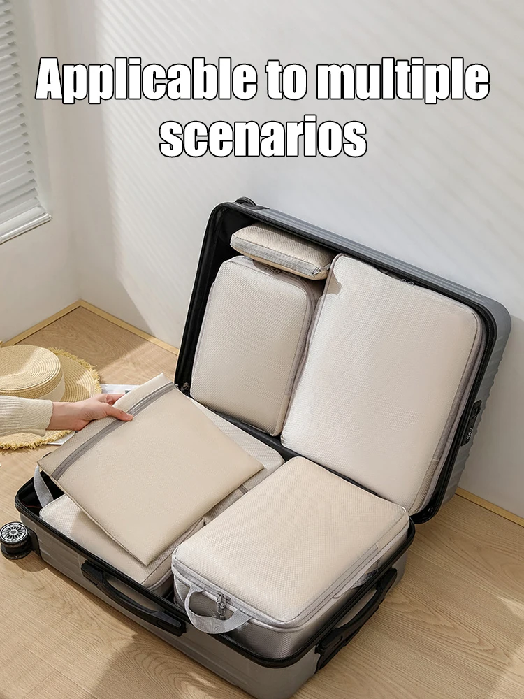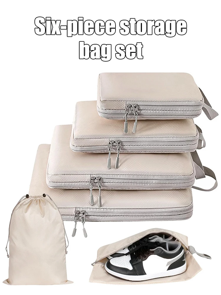 -51%Set/6 pcs Compressible Packing Travel Storage Bag Cubes Waterproof Suitcase Nylon Portable With Handbag Luggage Organizer