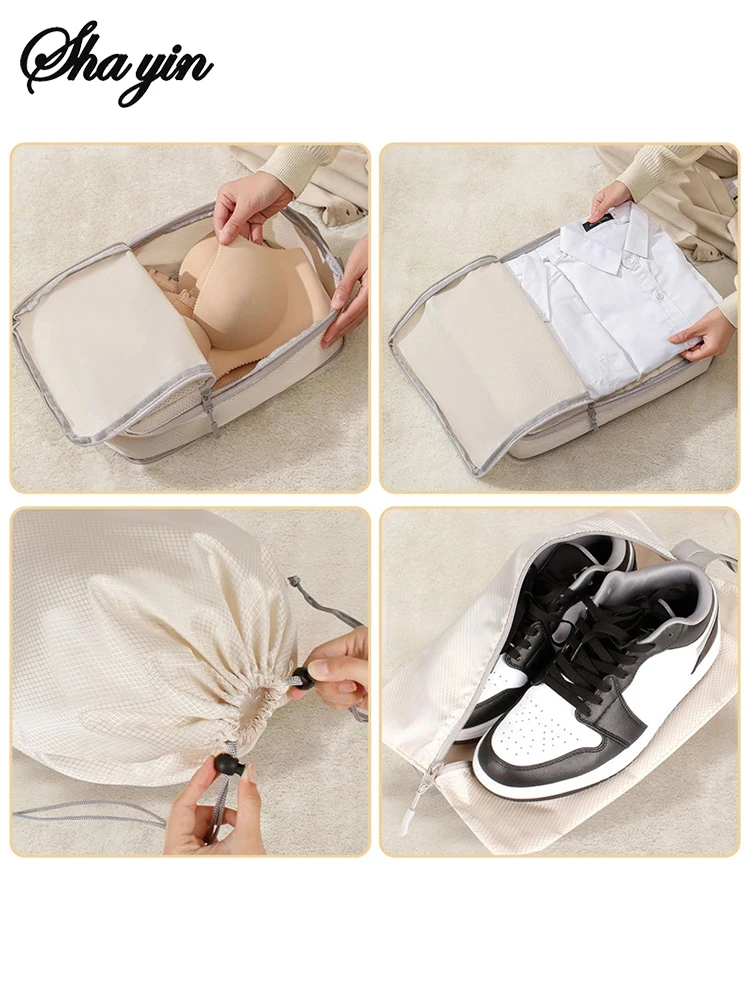 Set/6 pcs Compressible Packing Travel Storage Bag Cubes Waterproof Suitcase Nylon Portable With Handbag Luggage Organizer