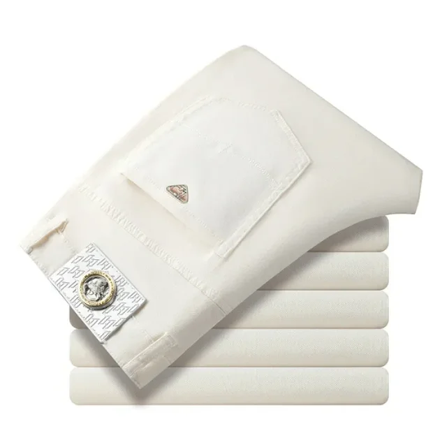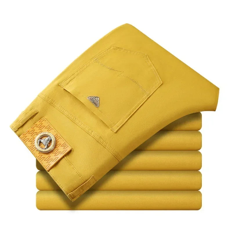 Seven-Color Stretch Jean Men’s Trendy Wild Simple 97% Cotton High-End Slim-Fitting Small Straight