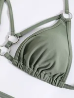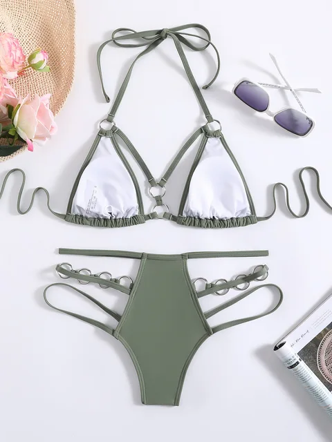 sexy army green push up ring bikinis sets two pieces high waist padded bathing suit beach wear women thong bikini swimsuits