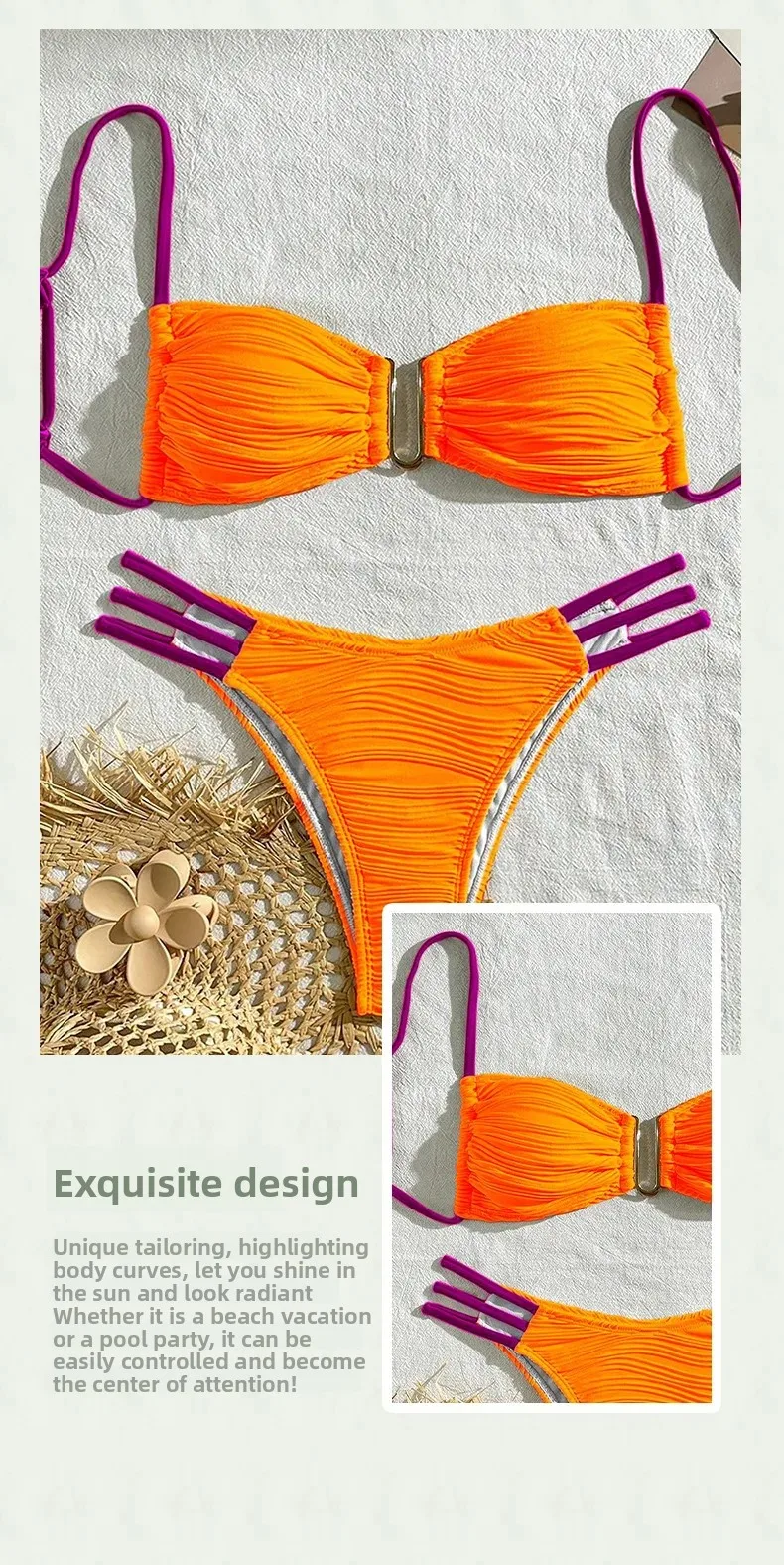 • Strap Design : The strap design of this bikini adds a sexy touch, enhancing the overall appeal of the swimwear.